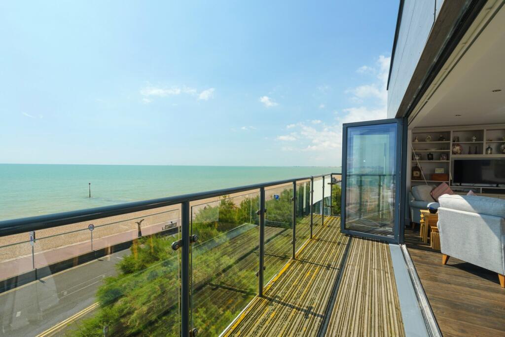 A luxurious and spacious two bedroom apartment with a balcony, offering breathtaking views over the English Channel and coastline. The open plan living space seamlessly integrates living and dining areas with a modern kitchen. Bi-fold doors fully open, providing access to the balcony and stunn...
