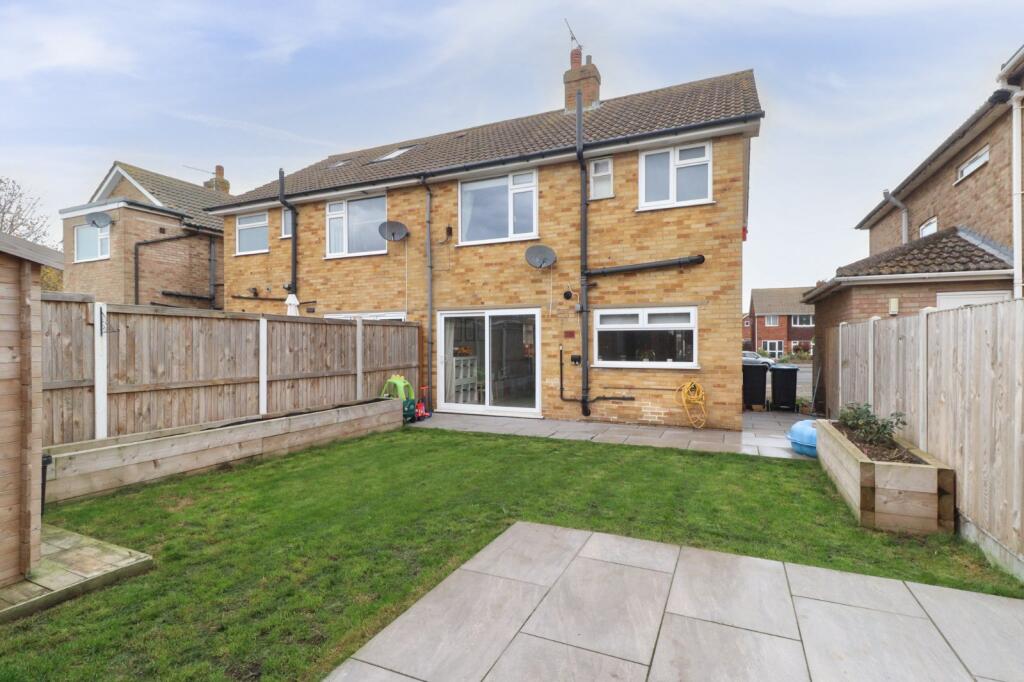 This is a three-bedroom semi-detached house in Garlinge, Margate. The property appears to be in good condition, with a modern kitchen and bathroom. It benefits from a garden and off-street parking. The location is convenient for local schools and amenities, although not immediately adjacent to transport links. The asking price of £340,000 seems reasonable in the context of the local market.