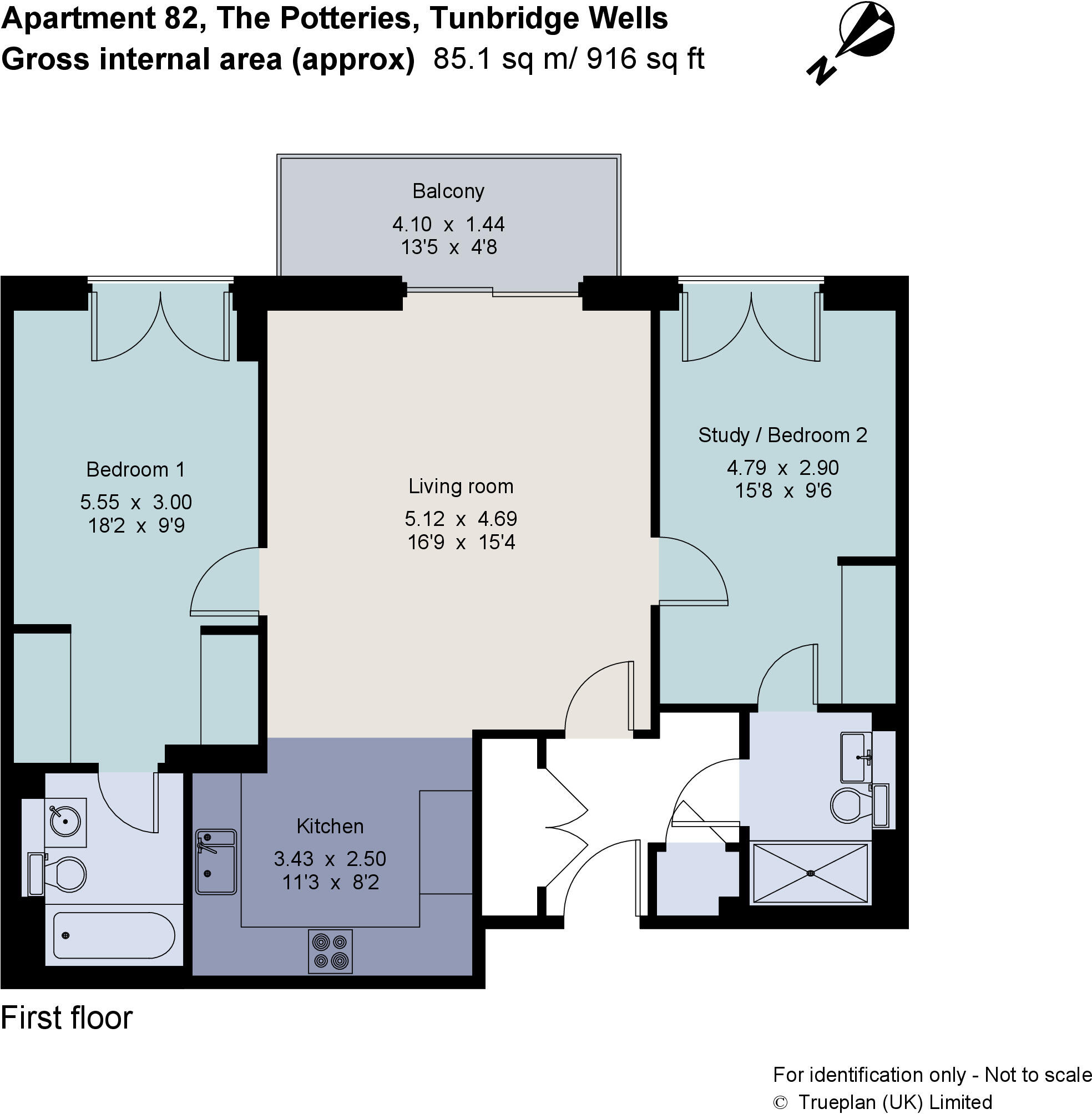 This is a modern two-bedroom, two-bathroom apartment in Tunbridge Wells. The property is well-located, being close to local amenities and transportation links. The apartment itself is in excellent condition, with modern fixtures and fittings. While it doesn’t have a private garden, there are communal garden areas. The price seems a little high compared to the average for the area.