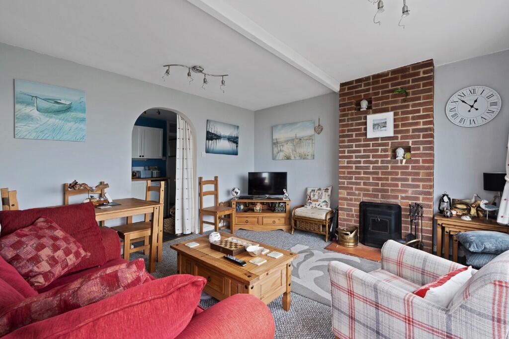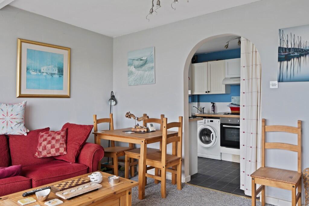 This is a two-bedroom chalet in Warsash, Hampshire. The property is located within the Solent Breezes Holiday Park. The interior appears to be in good condition, with a modern kitchen and bathroom. The property benefits from a small garden/patio area. The location is desirable, with good schools and transportation links nearby. The asking price of £299,950 seems reasonable compared to average property prices in the area.