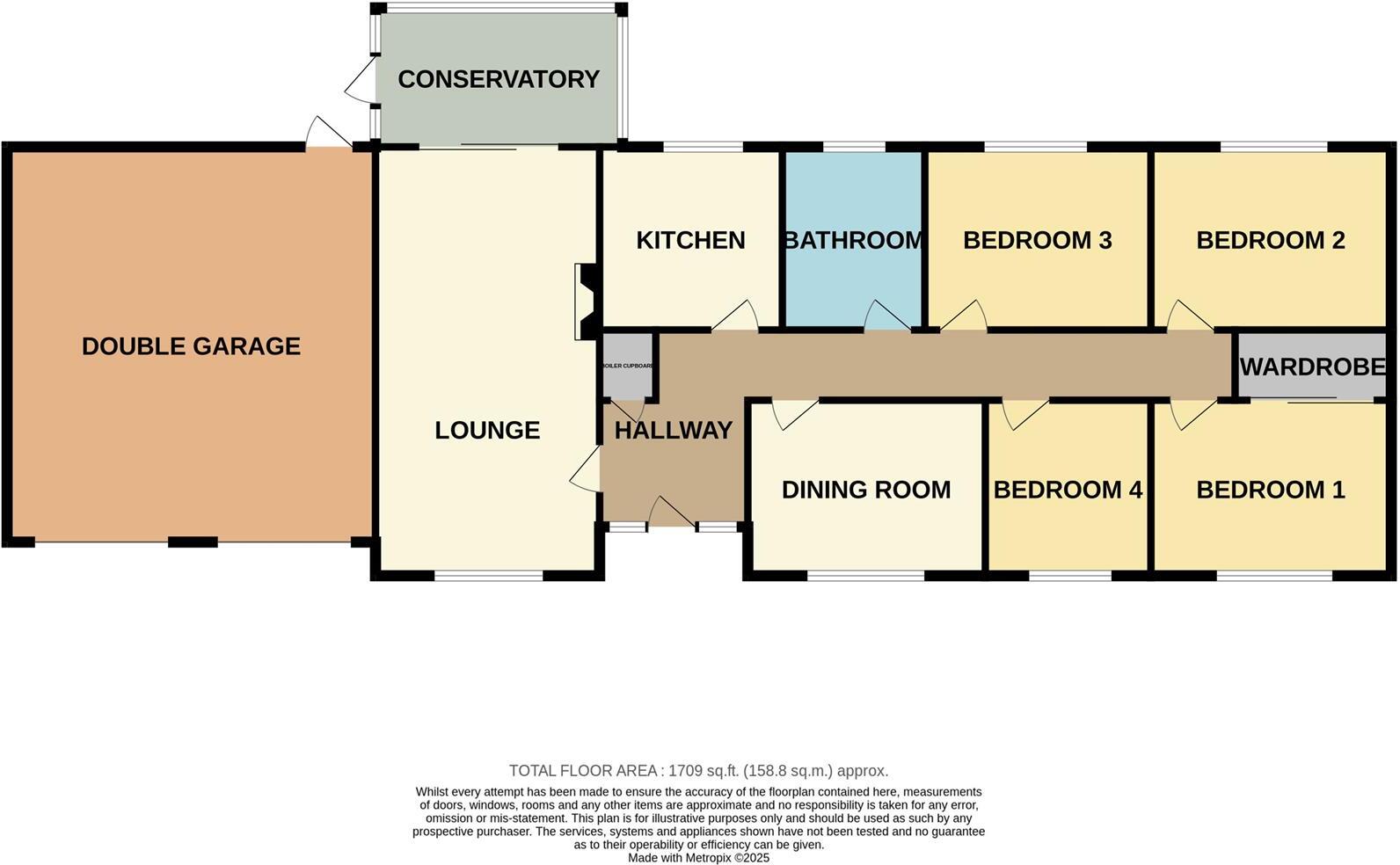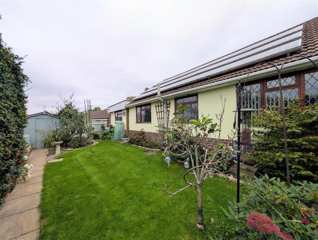 EXTENDED FOUR BEDROOM DETACHED BUNGALOW with a 21FT DOUBLE GARAGE, a 22FT LOUNGE with a wood burner, SOLAR PANELS and a 13FT UPVC DOUBLE GLAZED CONSERVATORY situated down a single track lane in a LOVELY SEMI RURAL LOCATION.