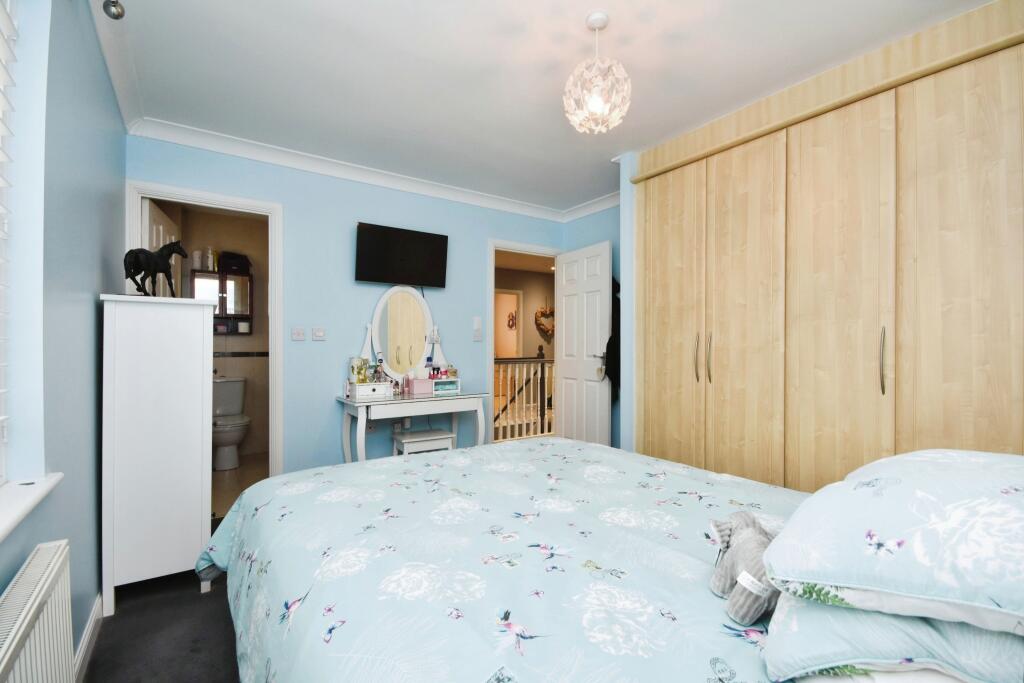 This five-bedroom, three-bathroom detached house in Great Notley, Braintree, is marketed at £500,000. The property’s location in Great Notley offers several advantages including proximity to local primary schools (Notley Green Primary School rated ‘Good’). The photos reveal a clean, well-maintained interior with a modern, updated kitchen and family-friendly layout. However, it’s important to note the proximity of Notley High School which is rated as having serious weaknesses. The outdoor space is present but seems comparatively small. Although the house appears to be well presented and modern, additional information regarding the exact plot size and square footage for comparative analysis within the local housing market is needed to accurately determine the property’s true value in comparison to similar properties. A thorough survey is also recommended before purchasing to fully assess any structural or hidden issues. The asking price may be considered slightly high relative to some similar properties unless it can be justified by factors such as superior internal fittings, additional outbuildings not shown, or a larger than average plot size.