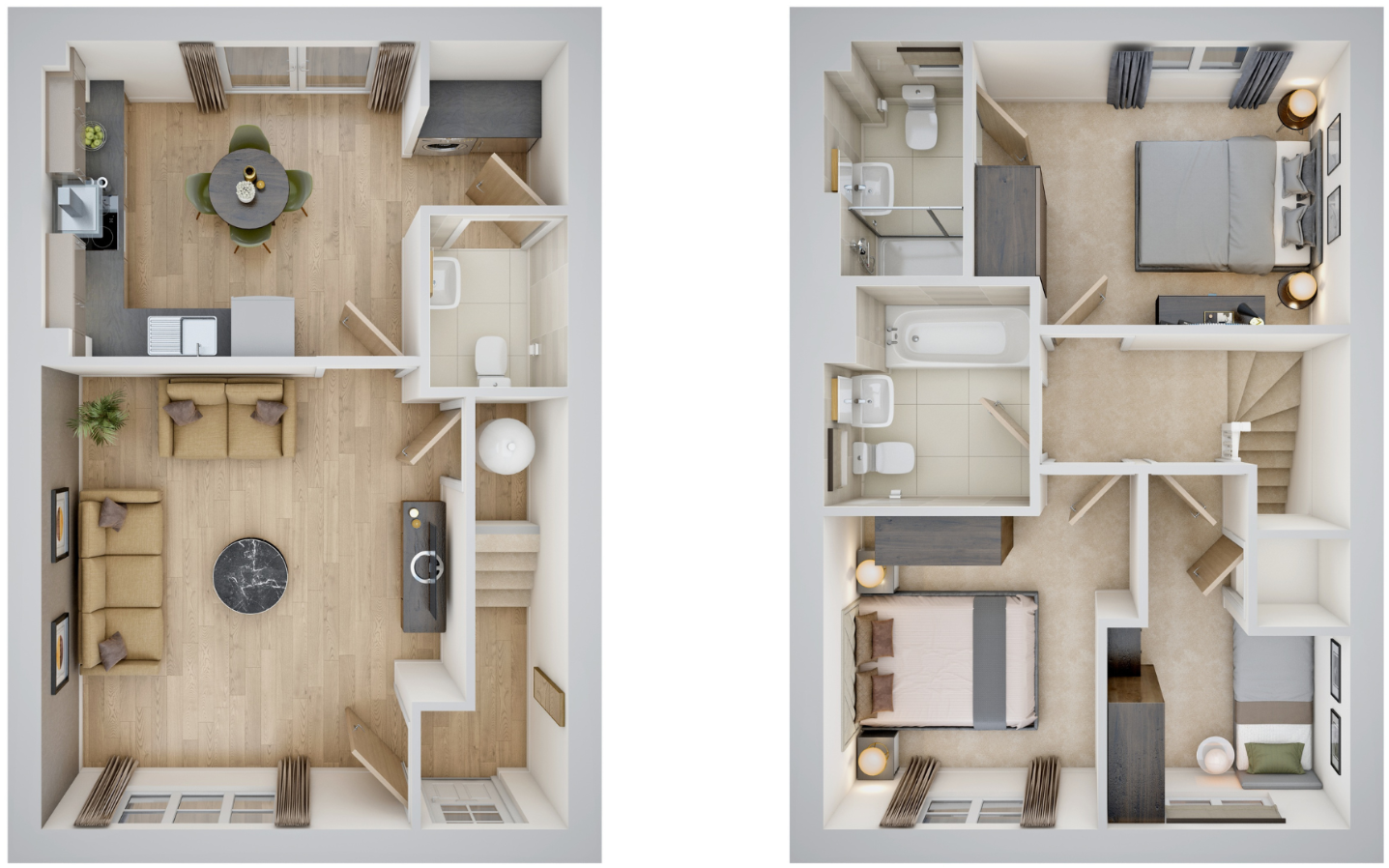 Home 412 - PERFECT FOR FIRST-TIME BUYERS. MODERN THREE-BEDROOM HOME with LARGE FRONT-ASPECT LIVING ROOM, L-SHAPED KITCHEN and OPEN-PLAN DINING AREA with FRENCH DOORS to SOUTH-FACING GARDEN. BEDROOM ONE with EN-SUITE, SECOND DOUBLE, FLEXIBLE SINGLE, CONTEMPORARY BATHROOM, WC & TWO PARKING SPACES.