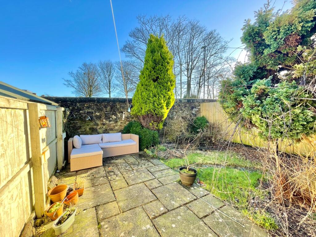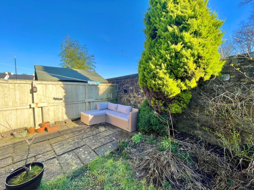 The property boasts a garden, though the provided images suggest it’s relatively small and might require some landscaping work to reach its full potential. The garden area appears to have some mature plants however, suggesting that the area is not in complete disrepair.