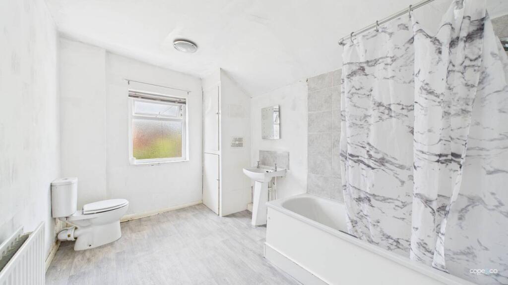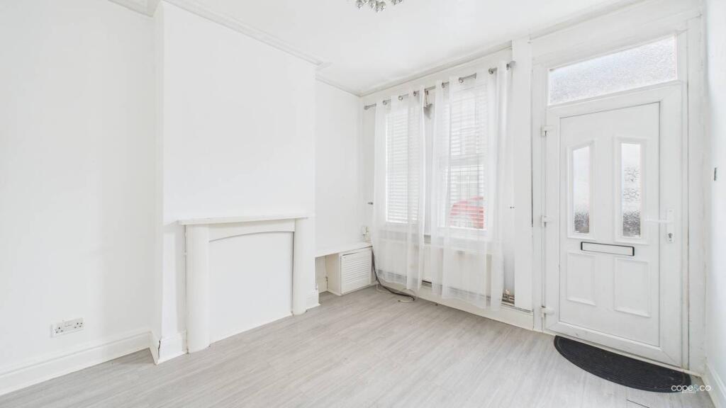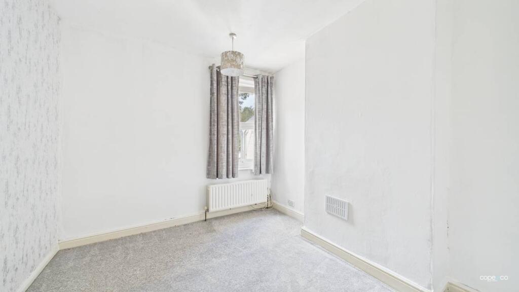 Neutrally decorated terraced property with two reception rooms, kitchen with appliances, two good sized bedrooms and large bathroom with shower over bath