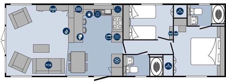 41' x 14' HOLIDAY PARK LODGE - MANUFACTURED IN 2018 - ON LICENCE UNTIL 2041 - 2 BEDROOMS (1 EN-SUITE) - TWO SEATING DECKS (1 SOUTH FACING) - HILL VIEWS