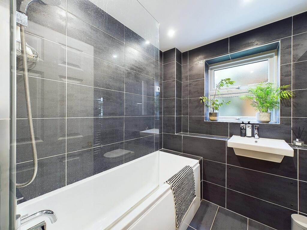 The property itself appears to be in good condition. The images show a modern interior with recently updated bathrooms and kitchen. There is no visible evidence of significant repair or renovation needs. The property also includes a private garden area, which is a desirable feature for many buyers.