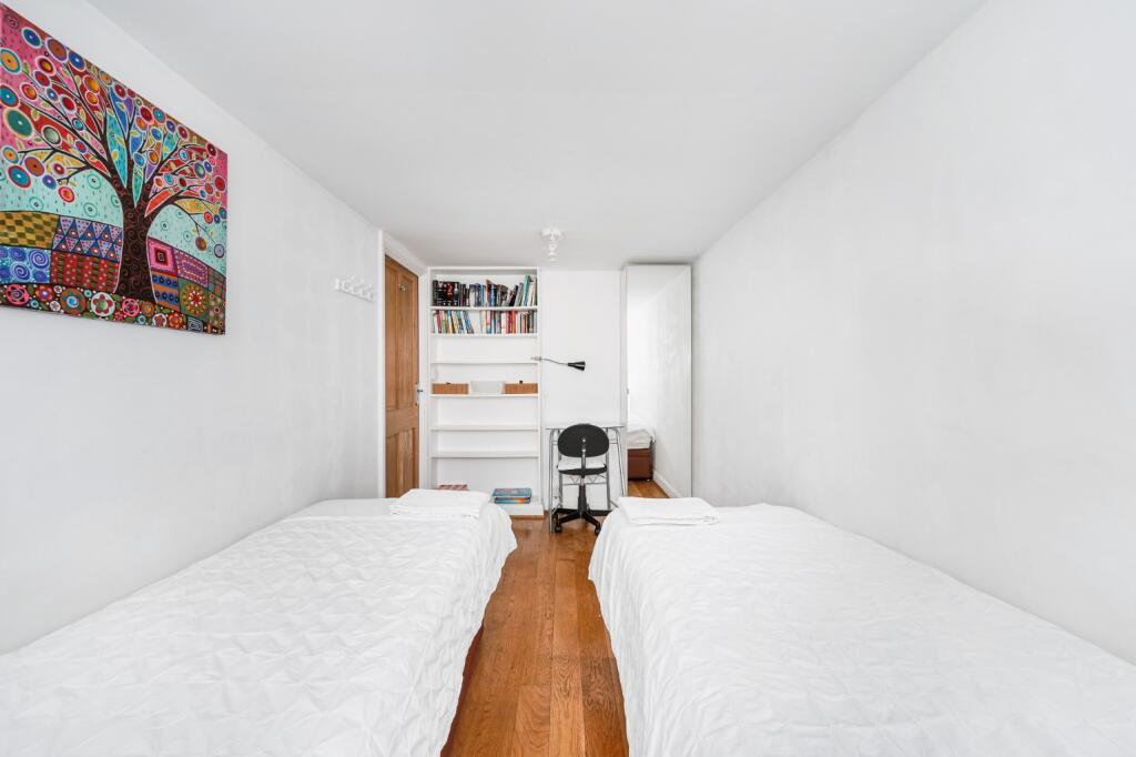 Modern two bedroom flat with communal patio for sale, located next to the incredible Queens Tennis Club!