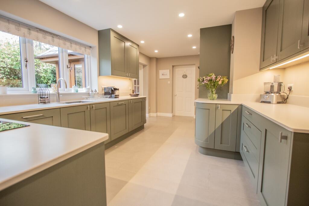 Stunning refitted kitchen, garden room, 2 en-suite bedrooms, gardens and garage