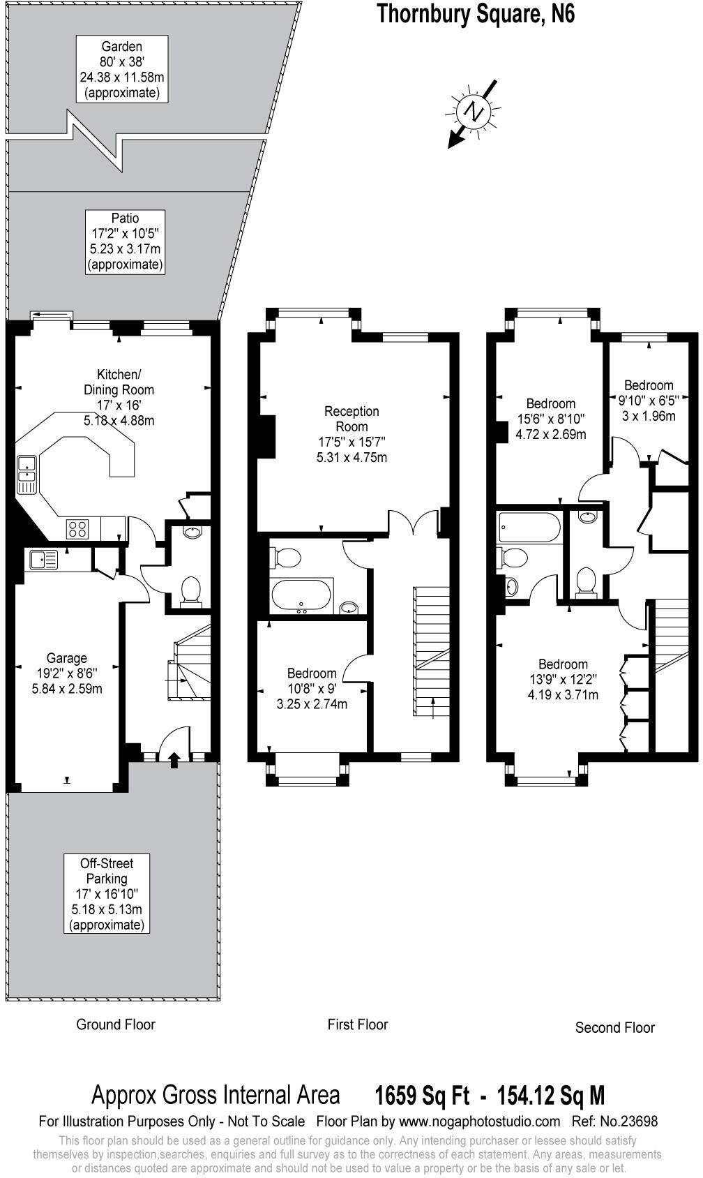 The list price of £1,395,000 for a 1,659 sq ft property in this location needs further analysis to determine its reasonableness. Unfortunately, the provided data lacks average price per square foot information for comparable properties in Thornbury Square, making a direct comparison difficult. However, considering the nearby property sales (though sqft data is missing), the price appears to be within the range of similar properties in the area, suggesting it may be a reasonable price, although further data would strengthen this assessment. The presence of a garden, the good condition of the property, and the desirable location all contribute to justifying the price.