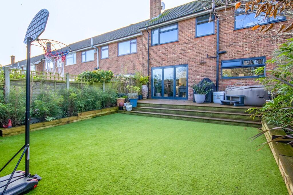 The property is a 4-bedroom house located in Hutton, Brentwood, Essex. It is listed at £685,000 and has 1,237.85 sqft of living space. The average house price in the area is £568,758 with an average size of 1,372 sqft, resulting in an average price per sqft of £414. The property is close to several schools, with St Joseph The Worker Catholic Primary School being the closest at 0.20 KM, which has an “Outstanding” Ofsted rating. Shenfield train station is also relatively close, at 1.39 KM. The property appears to be in excellent condition based on the provided images. It has been recently renovated or updated, featuring a modern kitchen and bathrooms. The interior is well-maintained and stylish. The exterior also looks well-maintained. While the plot size is not specified, the photos show a sizeable garden with artificial turf, suggesting a good amount of outdoor space. Considering the property’s excellent condition, desirable location near good schools and transport links, and what appears to be a good-sized garden, the list price of £685,000 seems slightly high compared to the average price per sqft in the area. However, the superior condition and potentially larger than average plot size may justify the higher price. More information on the plot size would allow for a more precise assessment of the price’s reasonableness.