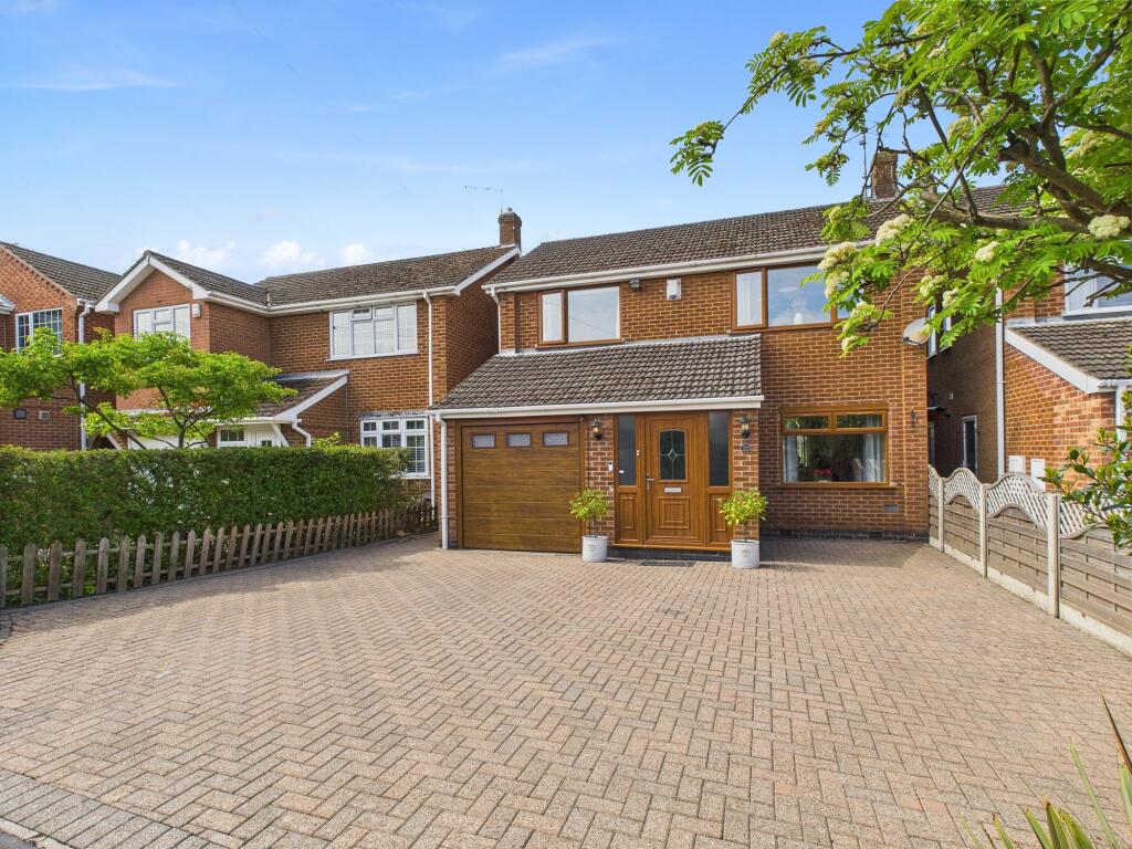 Immaculately-presented 4 bed detached home boasting modern interiors and including generous reception spaces, a superb kitchen, en-suite and bathroom plus a wonderful garden, large drive and garage.