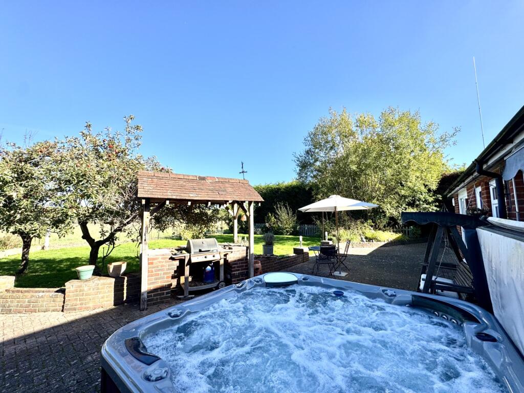 This is a detached property in Hound Green, Hampshire, featuring four bedrooms and two bathrooms. The house is in good condition, with a modern kitchen and bathrooms. It benefits from a large plot with a well-maintained garden, a patio area, and a hot tub. The property is located in a semi-rural area, offering a balance between countryside living and accessibility to amenities and transport links. The price is reasonable compared to the average price per square foot in the area, making it a potentially attractive purchase.