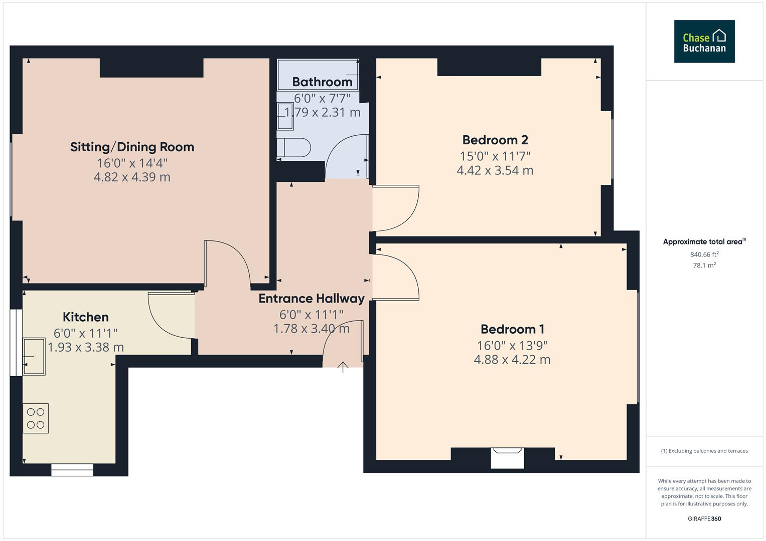 This charming single-floor property spreads across a total area of 839.59 square feet, offering exceptional comfort and elegance in its compact layout. It houses two generously sized bedrooms, complete with built-in wardrobes and classic fireplaces, providing a sense of warmth and homely sophisti...