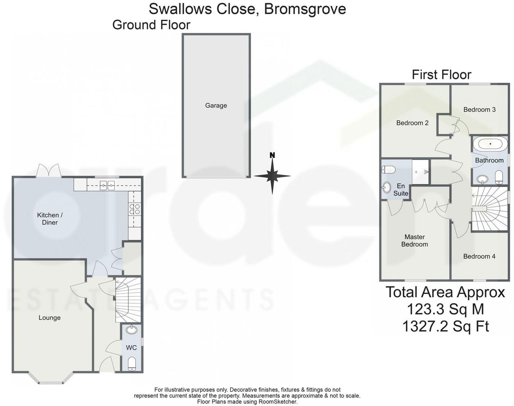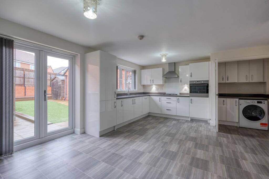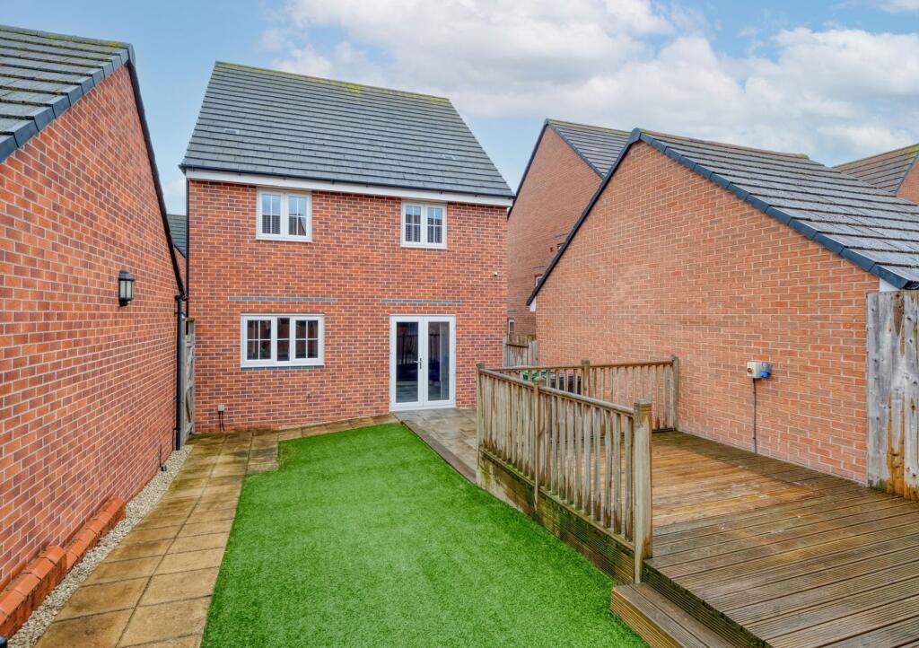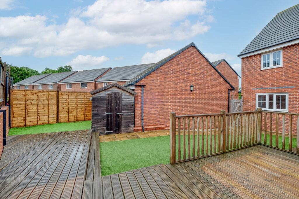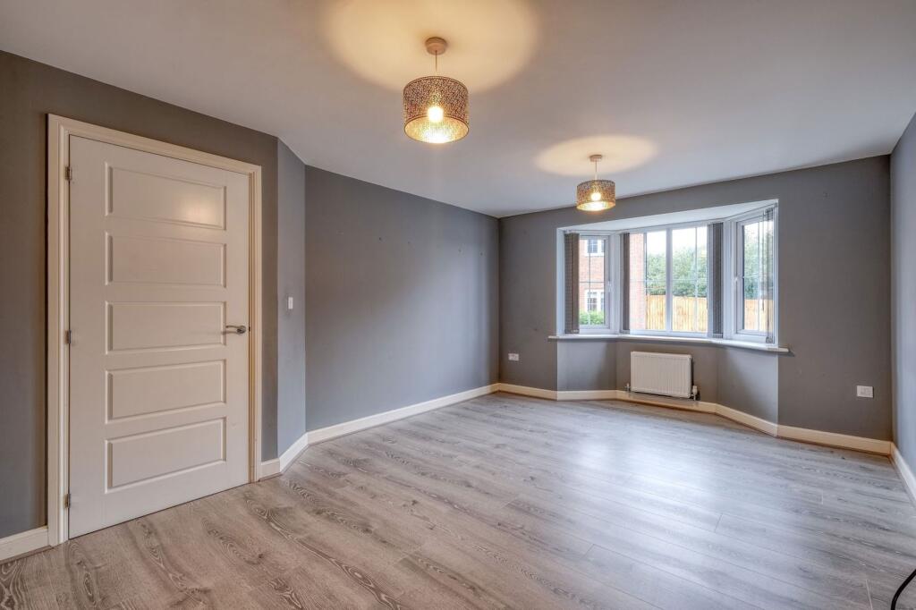 4-bed detached home in Norton Farm, Bromsgrove. Modern kitchen, master en-suite, family bathroom, WC. South-westerly garden, garage, tandem parking. Dimension details provided.