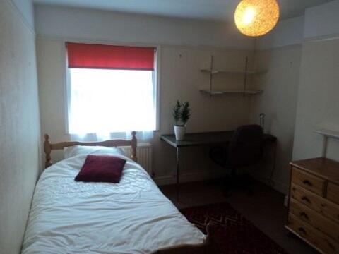 A LARGE SINGLE room with a SINGLE bed available in friendly shared house with 3 bathrooms and garden. Town centre end of Norwich Road. Includes bills and internet. Weekly cleaning provided. The room also has a desk, chair, built in wardrobe , chest of drawers and a fridge. Pleasant rear gardens