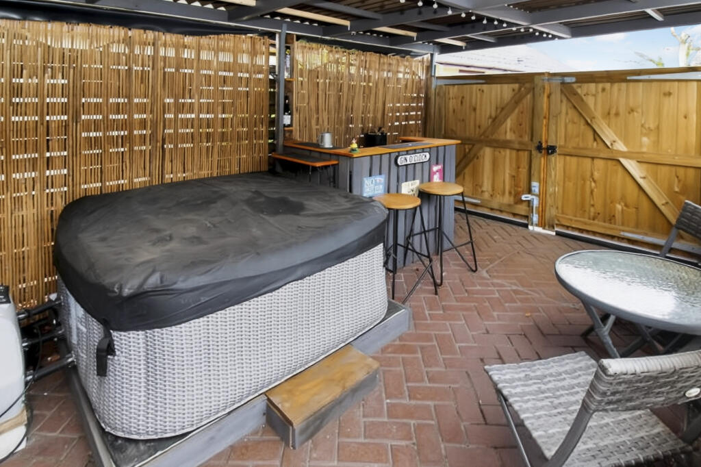 This is a detached bungalow on Sandy Lane, Poole. The property has 4 bedrooms and 2 bathrooms. It benefits from off-road parking, a garden, and a converted garage space with a bar and hot tub. The property is in good condition and has modern fixtures and fittings. The location is convenient for local schools and transportation links. The listing price is slightly above the average for the area, but this is justified by the condition of the property and the additional features.