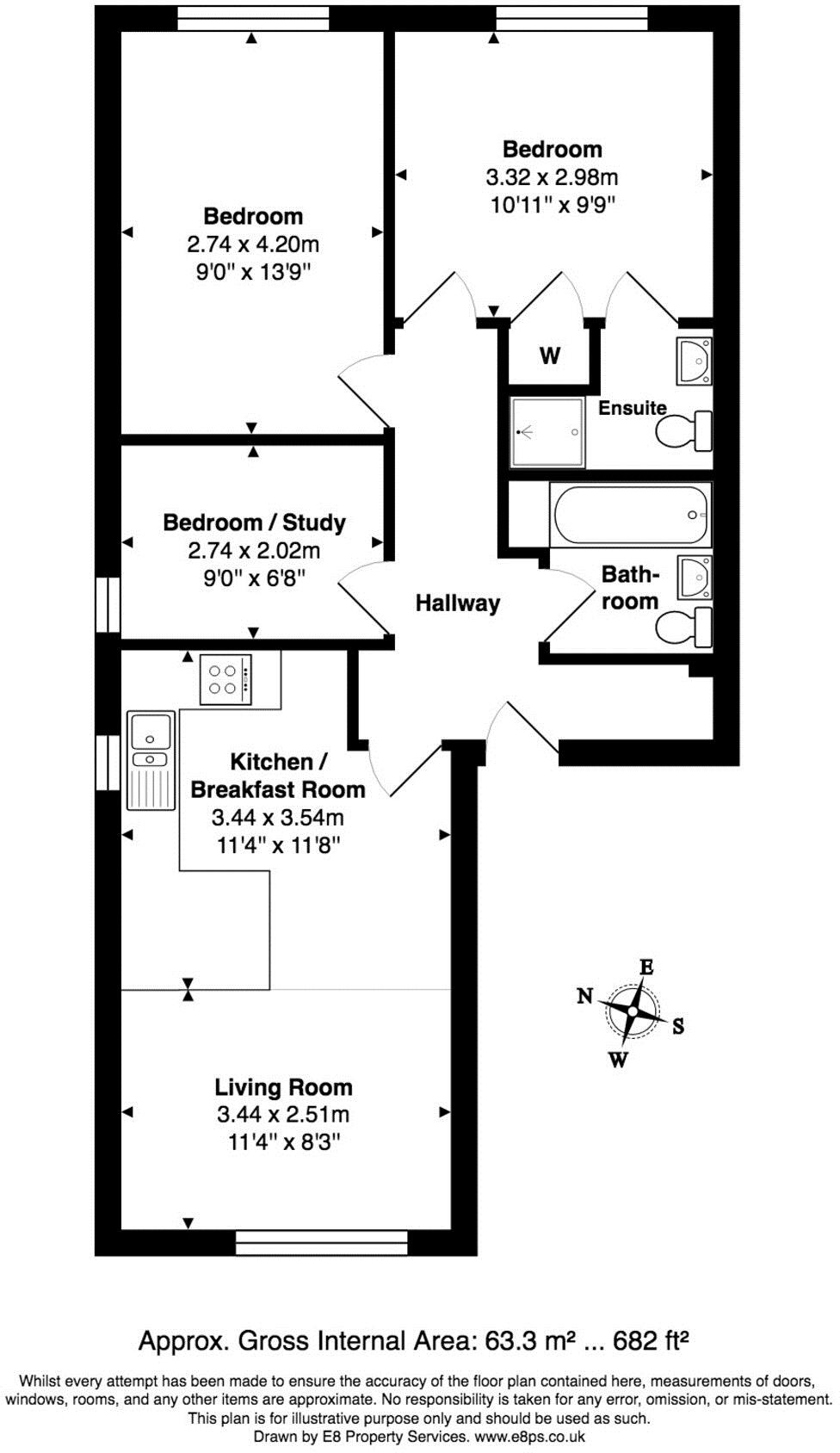 A spacious, top floor furnished two bedroom apartment with parking. This apartment offers two doubles bedrooms, one with an en suite bathroom, plus a seperate study room. The light, open plan living room/kitchen provides the perfect place for entertaining. Ideal for a professional couple or two ...