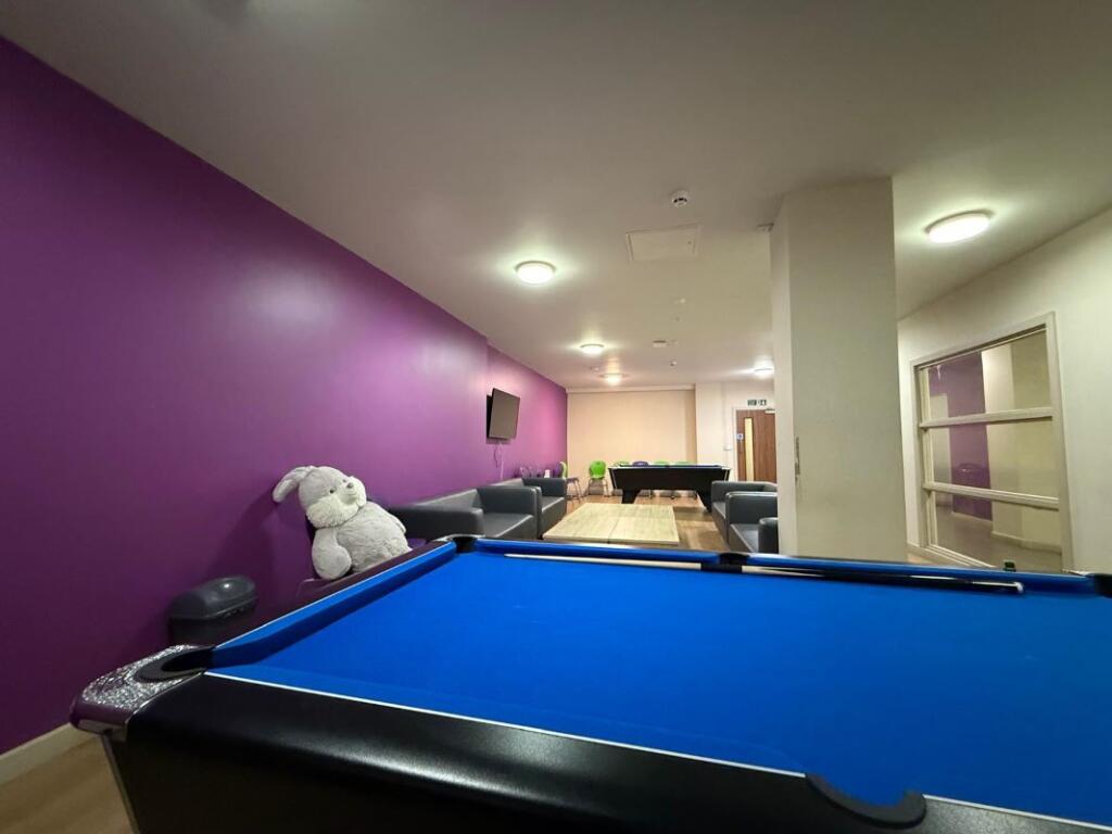 This is a studio apartment located in Clyde House, Glasgow. It is being marketed as an investment opportunity. The property itself appears to be in good condition, with modern fixtures. The building offers communal facilities such as a gym, laundry room, and common room. The location is central, with good access to transportation links. The asking price of £30,000 seems very competitive, especially when compared to other recent sales in the building.