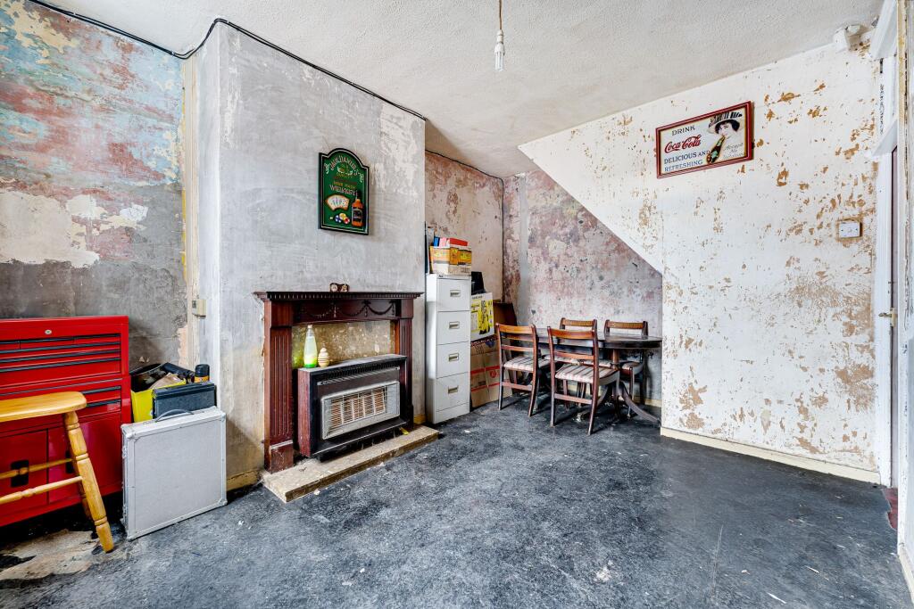 This is a two-bedroom terraced property located on Regent Road in Appleton, Widnes. The property is in need of renovation, with dated decor and visible wear and tear throughout. It features a small rear garden. The property is located close to local schools and Widnes train station. The asking price of £110,000 represents an opportunity for a buyer to add value through refurbishment.