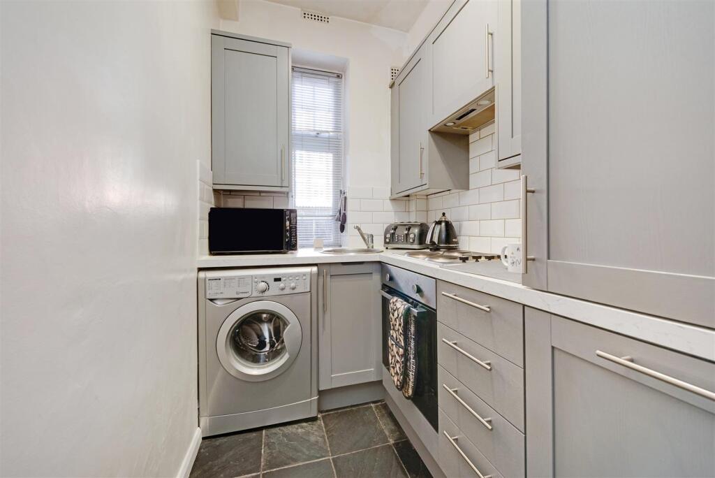 This is a one-bedroom flat in Belsize Park, London. The property is in a good location, close to transportation, schools and shops. The flat itself is in reasonable condition, with a modern kitchen, but the bathroom is dated and could benefit from renovation. The property benefits from communal gardens. The asking price of £425,000 seems reasonable, given the location and size of the property.