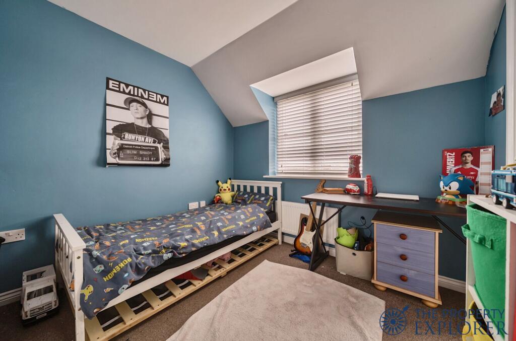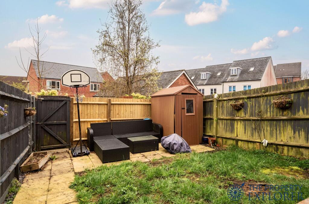 This three-bedroom end of terrace house is located in Rooksdown, Basingstoke. The property benefits from being close to local schools and transport links, including Basingstoke train station which is approximately 3.36km away. The house itself is modern, well-maintained and presented to a high standard. It has a small, manageable rear garden with a shed. The property is priced at £375,000, which is slightly below the average price for the area (£407,333), making it potentially good value for money. However, it is important to note that the average property size in the area is larger (1,084 sqft) than this one (842 sqft).