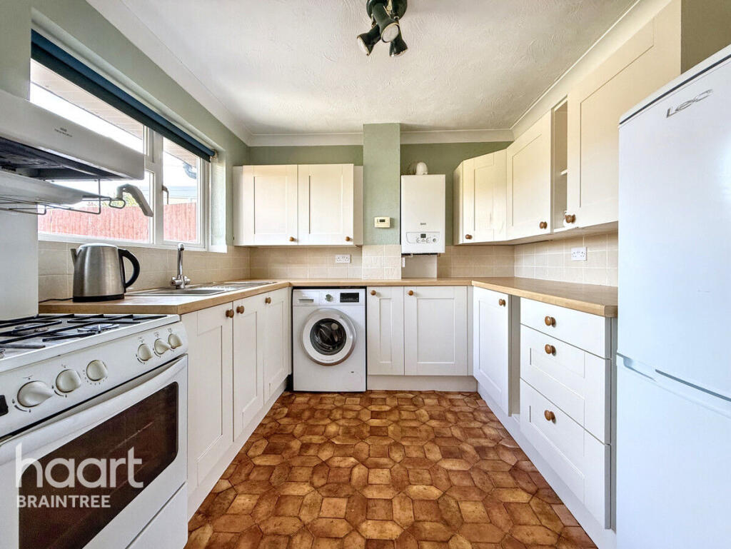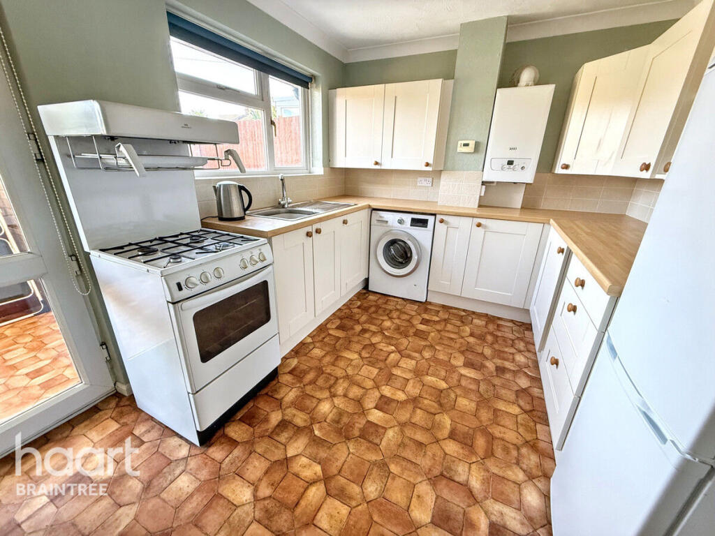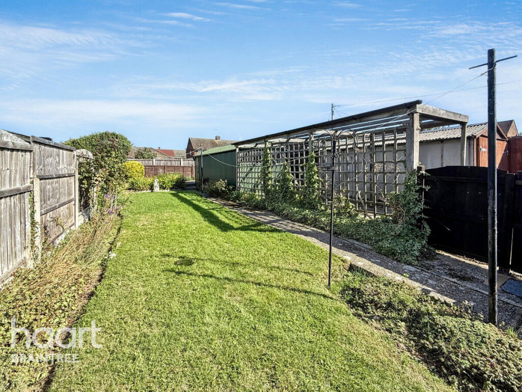 This is a two-bedroom semi-detached bungalow in Braintree, Essex. The property offers a garden and is located near schools and transportation. While the property requires some updating, it presents an opportunity for buyers to customize it to their tastes. The price is in line with the area, but the condition impacts its overall value.