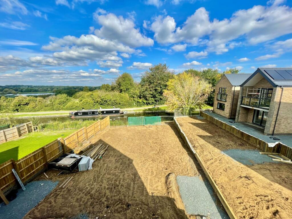 The property is located in Great Linford, Milton Keynes, a town with good transport links via train to London and other major cities. The area has several well-regarded primary schools within a reasonable distance, which is a positive for families. The canal-side location offers scenic views and recreational opportunities. The images show the property is currently under construction or in the final stages of completion. While the fixtures and fittings appear to be of good quality, the property is not yet finished. There is evidence of ongoing work, including exposed flooring, incomplete walls, and building materials present. Therefore, a move-in date of Christmas 2024 is plausible. The property includes a substantial garden plot, which is a desirable feature. The plot size is not specified, but the images show a large undeveloped area. The list price of £615,000 is consistent with other similar properties in the area, though the lack of square footage data makes a precise comparison difficult. Given that the property is brand new and unfinished, the price appears to be in line with current market values for new-build homes in this location. However, a final assessment of value for money will depend on the final specifications and quality of the finished property.