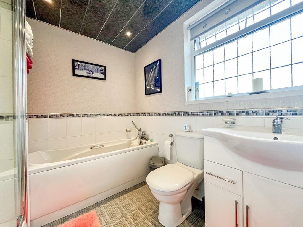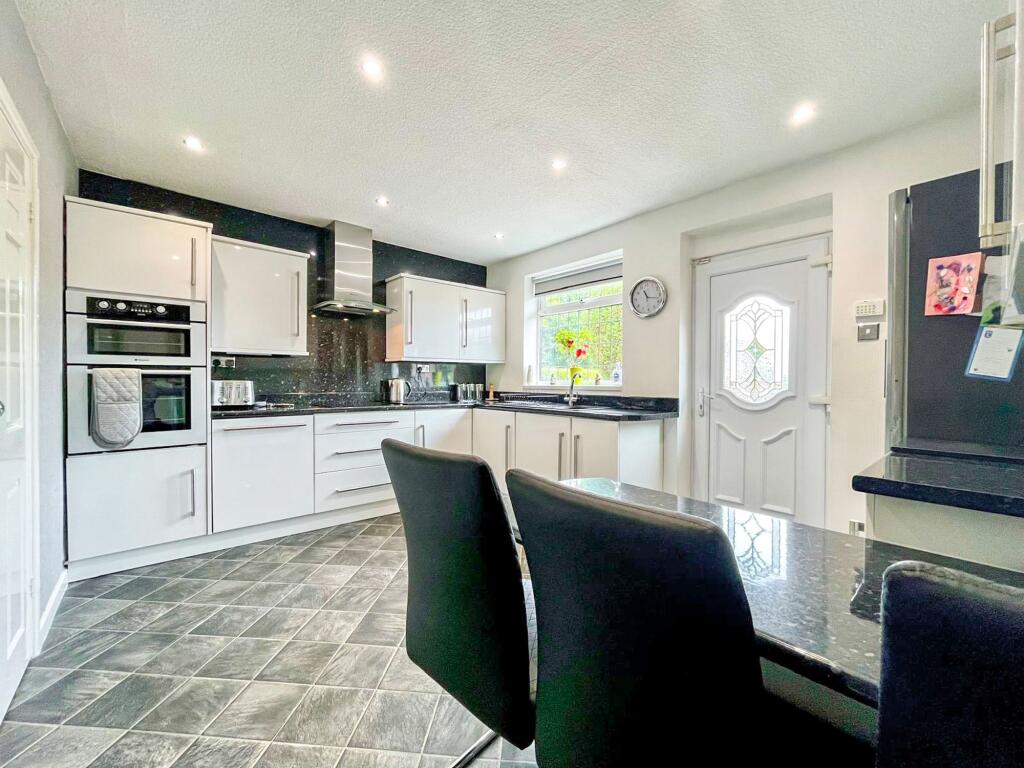 This is a detached bungalow in Seddons Farm, Bury. The property has three bedrooms and one bathroom. The property appears to be in generally good condition, with a modern kitchen and well-maintained exterior. However, some of the interior decor appears dated and may benefit from updating. The property has a good-sized garden and a large paved driveway. Greenhill Primary School is nearby, which is a positive for families with young children. However, the nearest train station is over 6km away, which may be inconvenient for commuters. The list price of £439,950 seems high compared to the average price in the area.