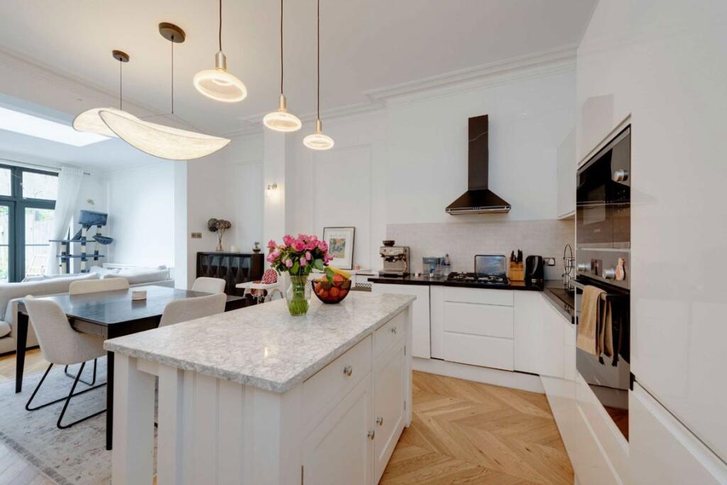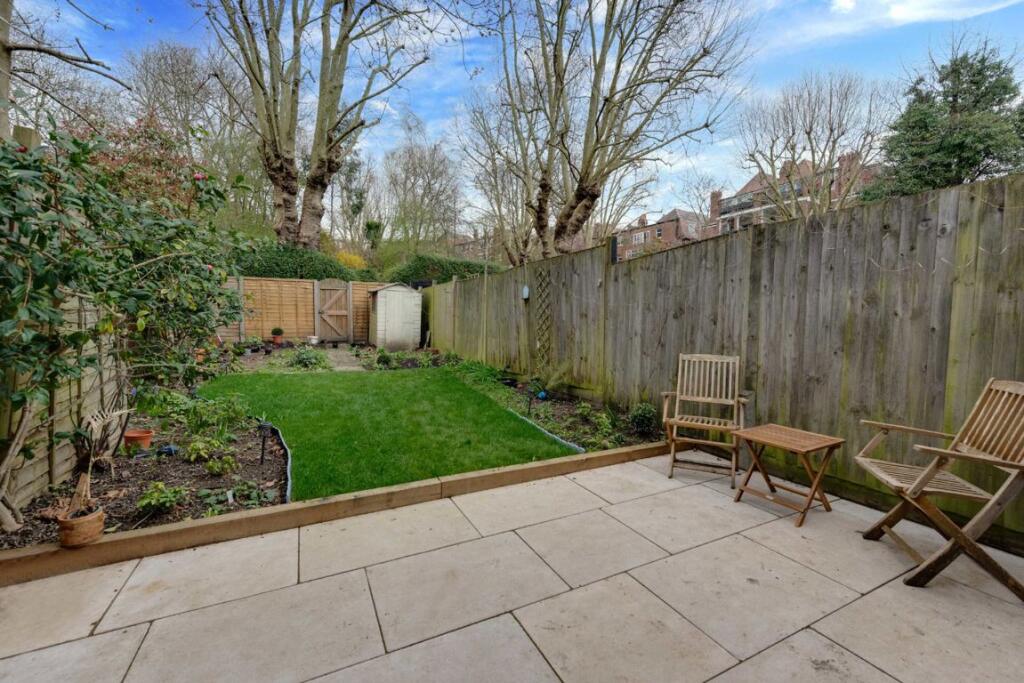 A stunning three bedroom home featuring its own private garden and direct access to a spacious communal garden. This beautifully maintained property boasts a stylish open-plan reception with a fully fitted modern kitchen, two generous double bedrooms, a third single bedroom, two sleek contemporar...