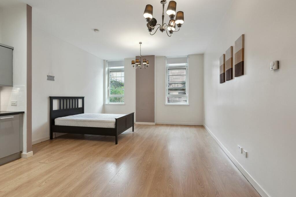 This studio apartment at 460 Sauchiehall Street, Glasgow, is situated within ‘The Beresford’, a notable Art Deco building. The location is a significant advantage, placing the property in the heart of Glasgow’s city centre. The studio apartment itself appears well-maintained and modern, presenting a stylish and functional living space despite its compact size. While the provided images show a well-presented interior and the building’s impressive exterior, the floorplan reveals a compact layout with an integrated kitchen and bathroom. The lack of a private outdoor space is typical of city-centre apartments. The price point needs more detailed local data to make a stronger statement on its competitiveness. Overall, the property would likely appeal to single professionals or students seeking convenient city-centre living, or possibly a buy-to-let investor given its location within a landmark building. The lack of information on the leasehold/freehold status is a noteworthy detail that potential buyers should clarify. Furthermore, potential buyers should confirm all details of service charges and any associated building costs with the estate agent.