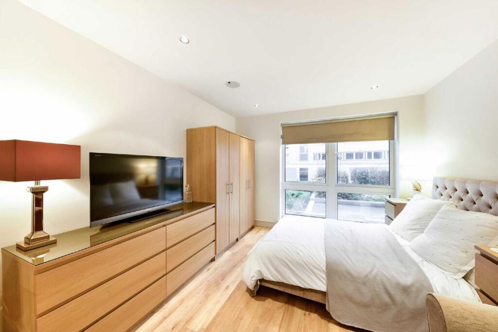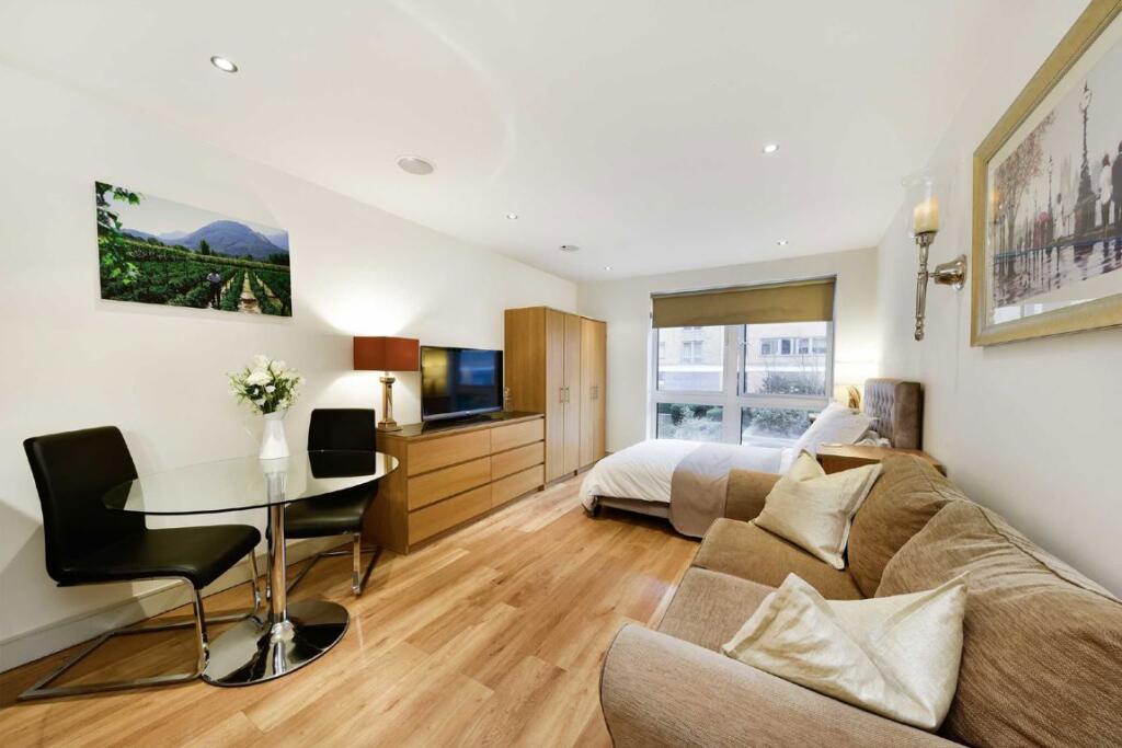 An immaculately finished studio flat in Fulham's most sought after development. This homely studio apartment benefits from use of a 24 hour concierge, swimming pool and gym.