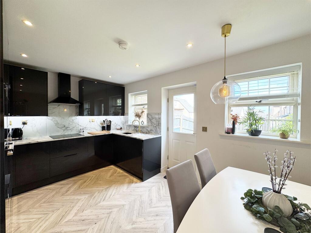 This property is a 4-bedroom, 3-bathroom end of terrace house located in Huddersfield, West Yorkshire. The property is modern and well-presented, with a contemporary kitchen and bathrooms. There is also a good-sized garden. The location is convenient, with nearby schools and transportation links. The list price of £200,000 is slightly below the average price for the area, making it potentially good value for money.
