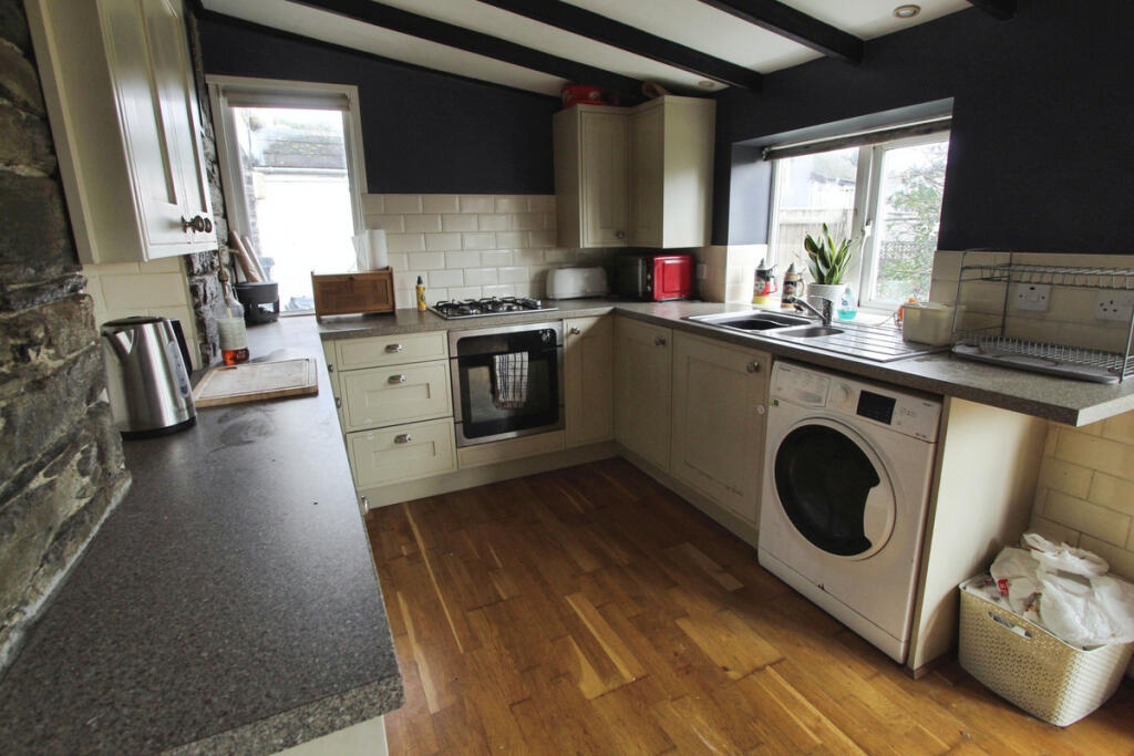 This is a two-bedroom cottage in Liskeard Central. The property appears to be in generally good condition, with a modern bathroom and updated kitchen. It has a garden that requires some landscaping. The location is convenient, with schools and transportation links nearby. The asking price of £160,000 seems reasonable considering the property’s size and location.