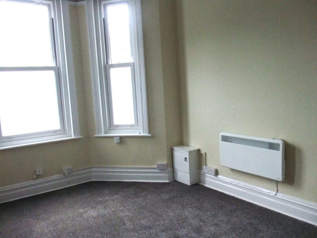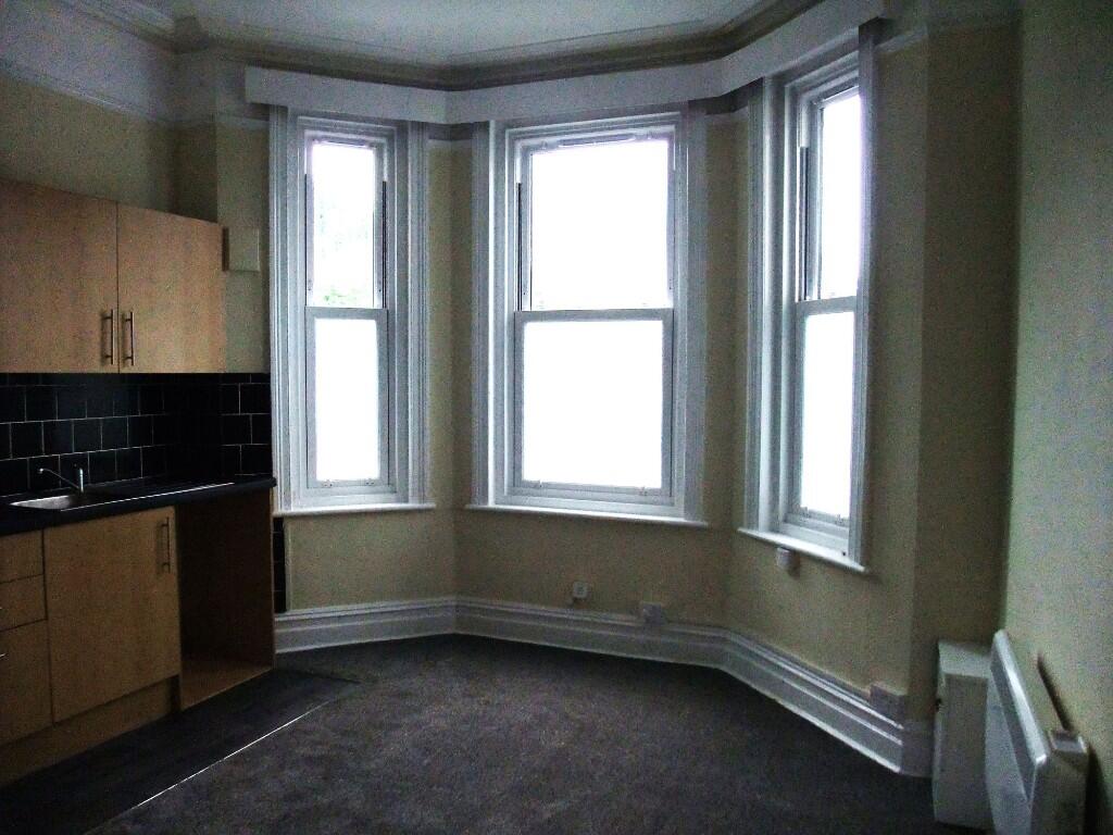 Reduce and ready to move into; ground floor studio flat, one of six units. Newly decorated and new carpet and lino flooring throughout. Double glazed, water rates included in the rent and hot water. Shower room. Council Tax Band A. Off road parking (if space available) and roadside parking