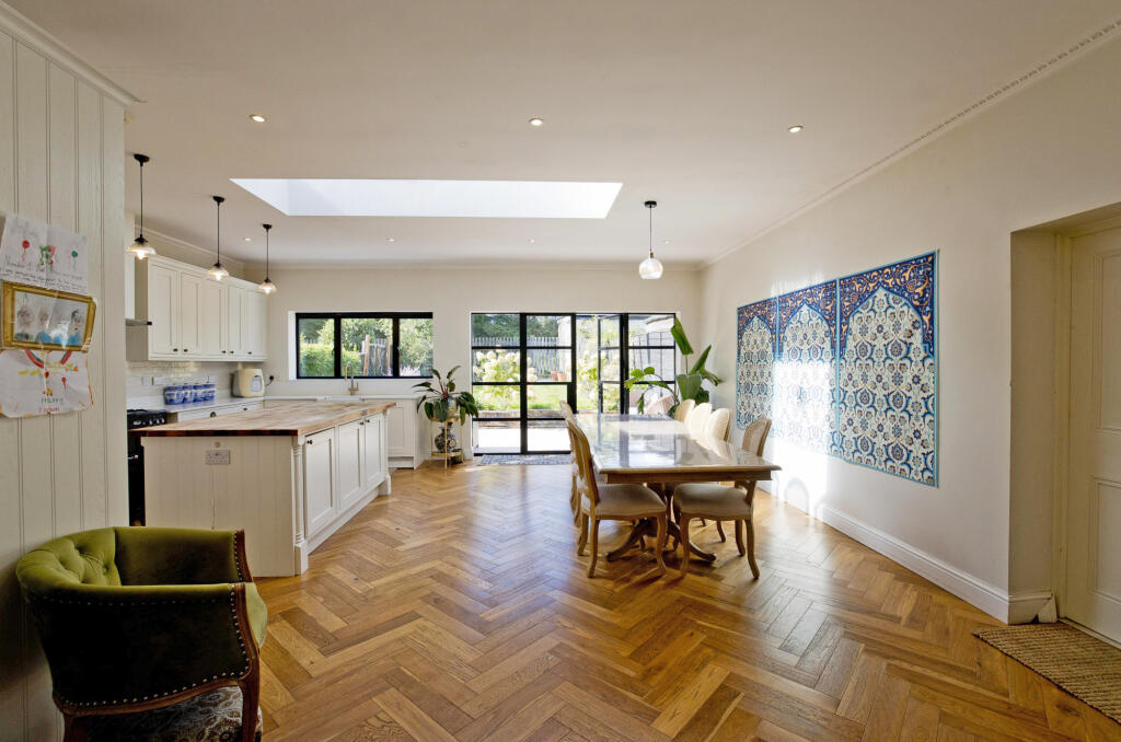 Spectacular four bedroom house to rent in Palmers Green. The house is finished to an excellent standard with stunning large open plan kitchen with heritage style glass French doors.