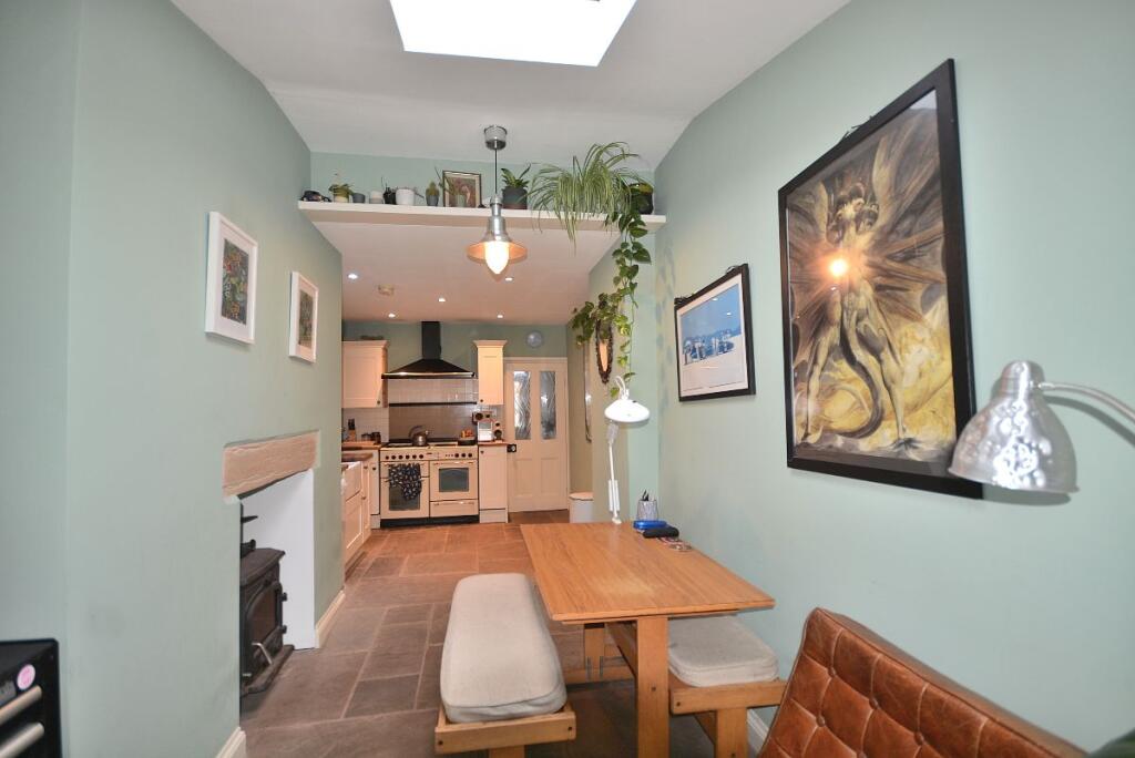 Based on the images provided, the property appears to be in good condition. It has been well-maintained and updated with a modern kitchen and bathroom. The property has retained some traditional features, such as the fireplace, which adds character.
