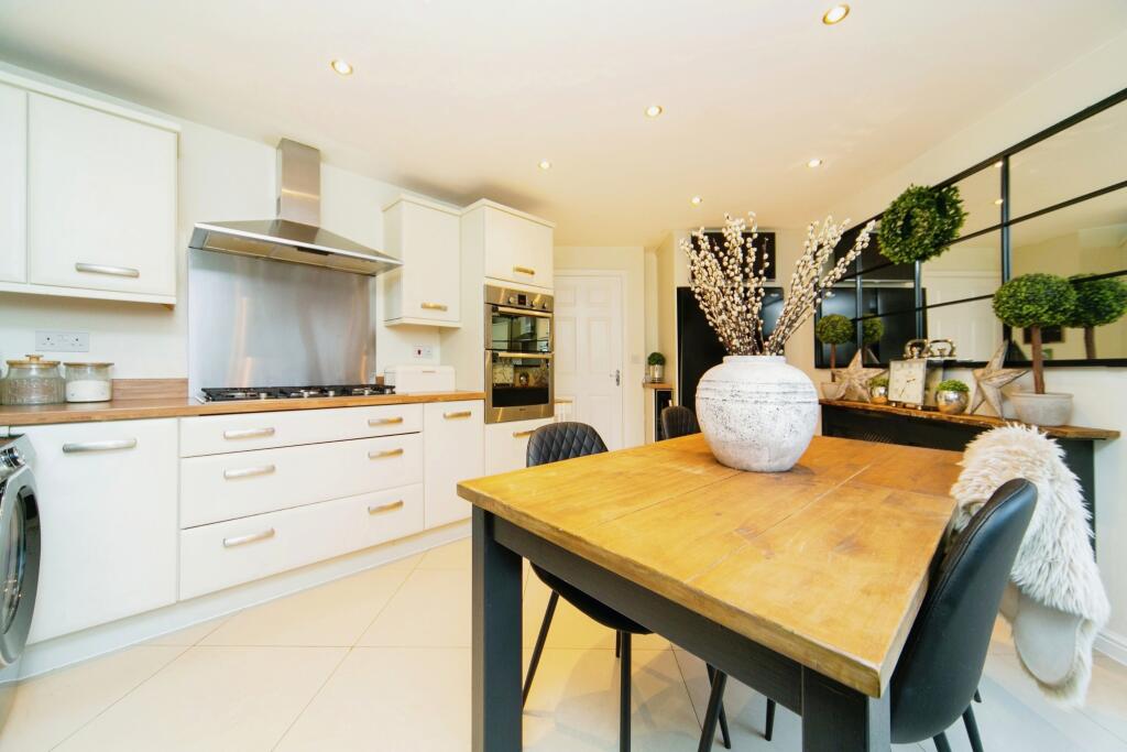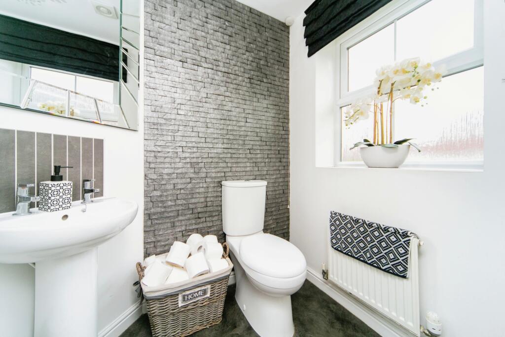 This four-bedroom, two-bathroom semi-detached house in Chapelford, Warrington, is presented in excellent condition. The property boasts a modern interior with an updated kitchen and bathrooms. The interior design appears stylish and well-maintained. The external images show a well-kept garden, although not large. The property is located in a desirable area with good schools and transport links, making it an attractive family home. The listing price requires further analysis due to a lack of definitive comparable data in terms of price-per-square-foot. However, while not a bargain, given the property’s condition, location and the fact it seems to be priced in line with similar properties listed nearby (though without accurate sqft data to compare), it appears to be a reasonable price for the area. More information on the plot size and detailed comparable sales data would allow for a more precise evaluation.