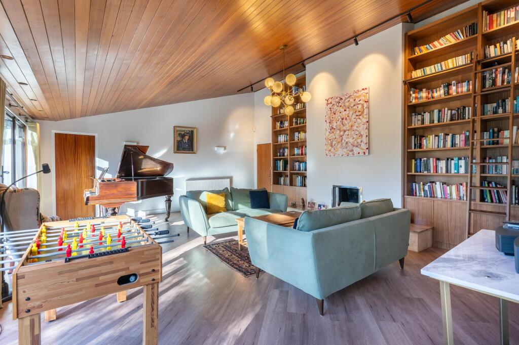Nestled at the end of an exclusive village cul-de-sac, this stunning mid-century detached residence offers over 4,000 sq ft of beautifully designed living space. Boasting superb original features, including striking vaulted panelled ceilings and distinctive angular rooflines, this architectural g...