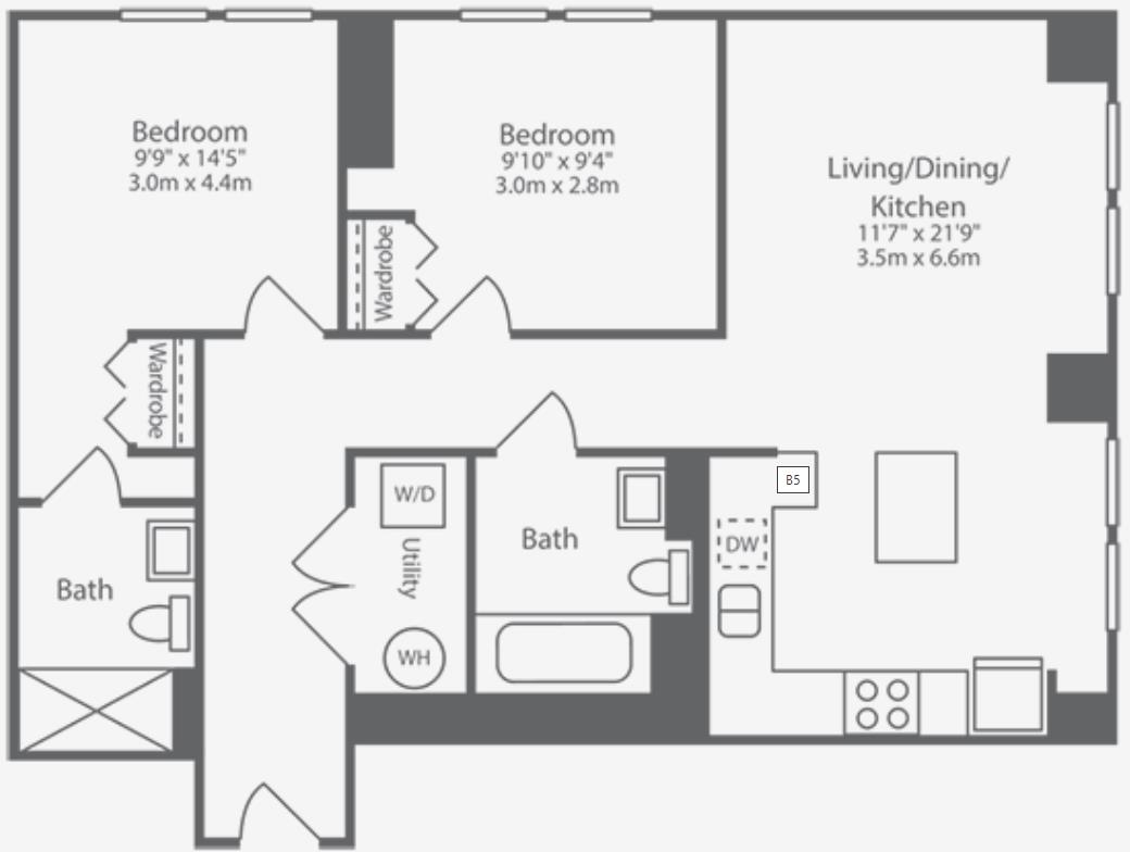 NHS Staff & Teachers – One month’s rent free when moving before the end of August This stunning two-bedroom, two-bathroom apartment perfectly blends contemporary design, everyday comfort, and an unbeatable city-centre location. The bright open-plan living area is framed by floor-to-ceili...