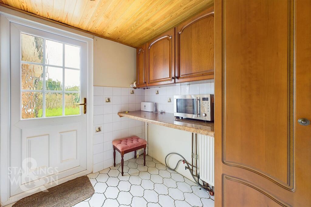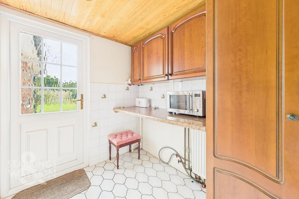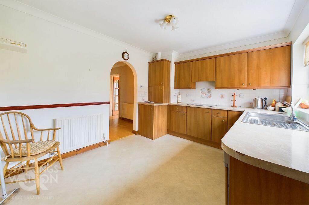 This property is a 2 bedroom, 2 bathroom bungalow located in Poringland, a village on the outskirts of Norwich. The property benefits from a good sized south facing garden and off-road parking. It is conveniently located close to local amenities and schools, making it an attractive option for families. While the property appears to be in reasonable condition based on the provided photos, some modernisation may be desirable to enhance its overall appeal. The list price of £350,000 seems reasonable considering the location and size of the property, but a detailed survey is recommended to assess any potential maintenance needs.