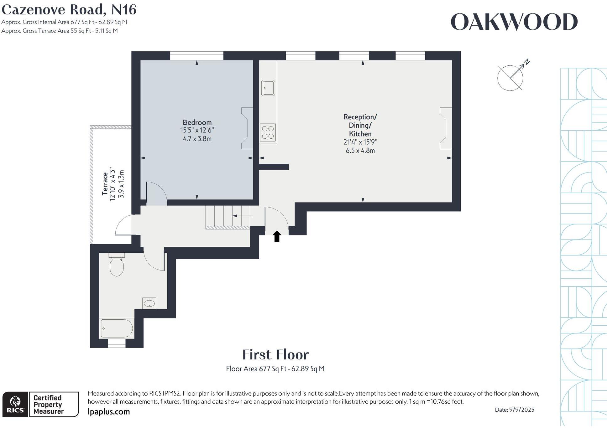 This is a one-bedroom flat on Cazenove Road in Hackney, London. The property is in a good location, with access to transportation and schools. The condition of the property is good, with a modern kitchen and bathroom. The property has a small balcony, but no significant garden. The price is slightly above the average for the area.