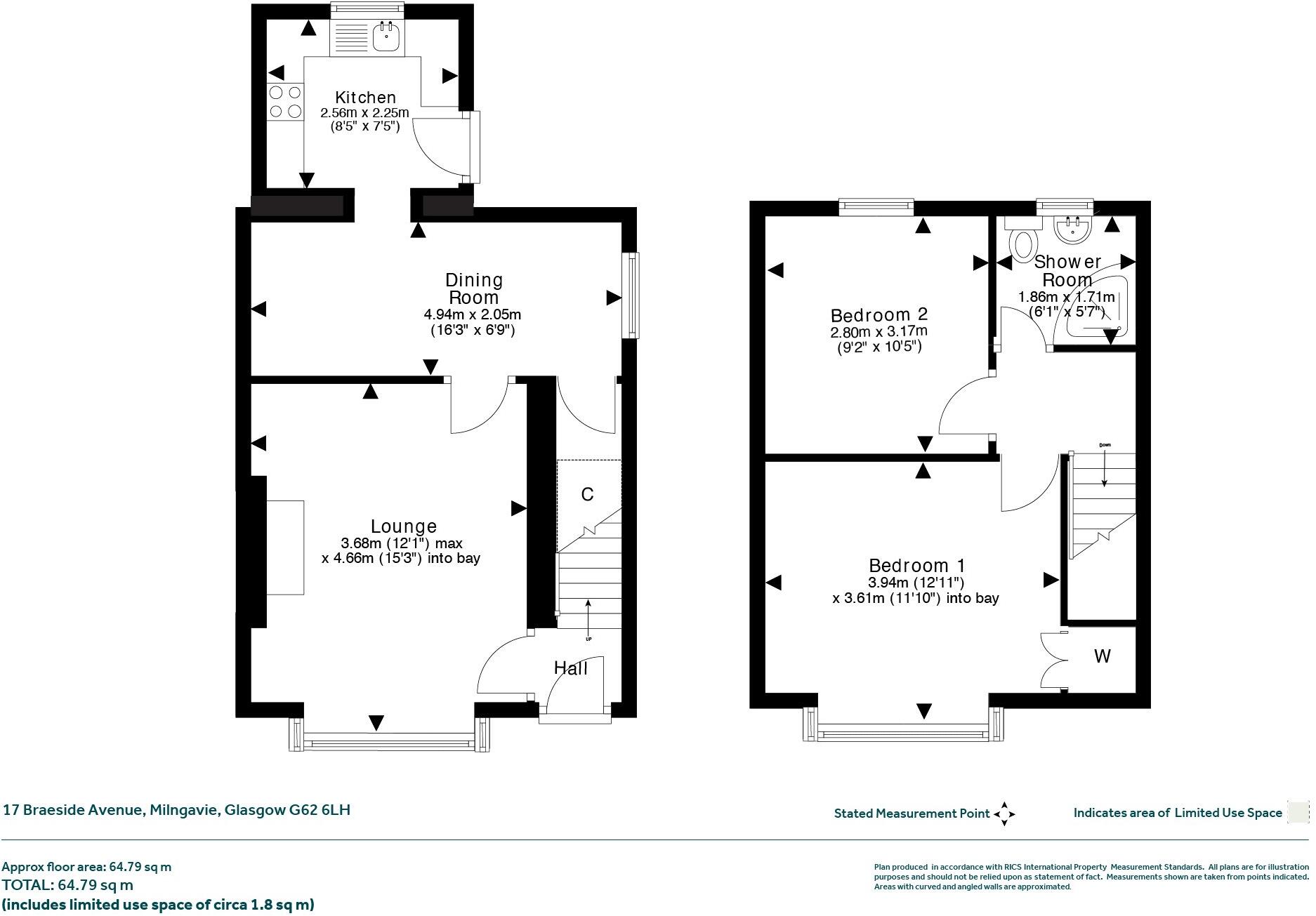 This is a two-bedroom semi-detached property located on Braeside Avenue in Milngavie. The house features a front and rear garden. The interior is functional but could benefit from modernisation, particularly in the kitchen and bathroom. The property is situated in a desirable residential area with good access to local amenities and transportation links, including Milngavie train station which is less than 1KM away. The asking price of £220,000 appears reasonable when compared to average property prices on the same street.