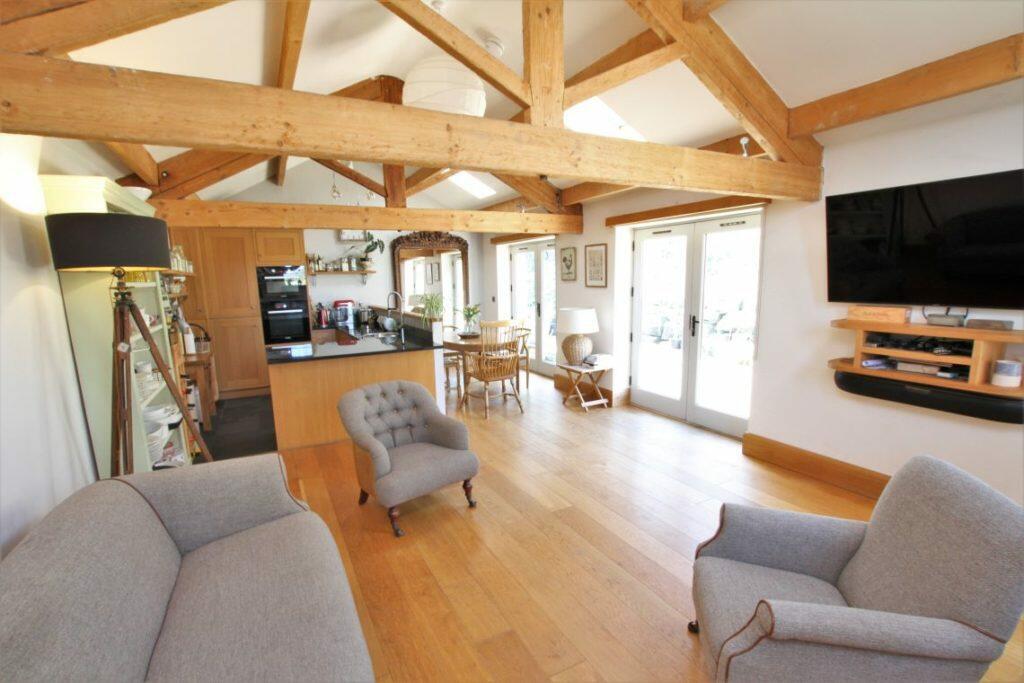 A most attractive detached barn conversion standing in just over half an acre of grounds providing stylishly appointed three bedroom accommodation with a fabulous first floor open plan living/dining/kitchen area opening onto a spacious south facing terrace. Convenient setting between Steeton a...