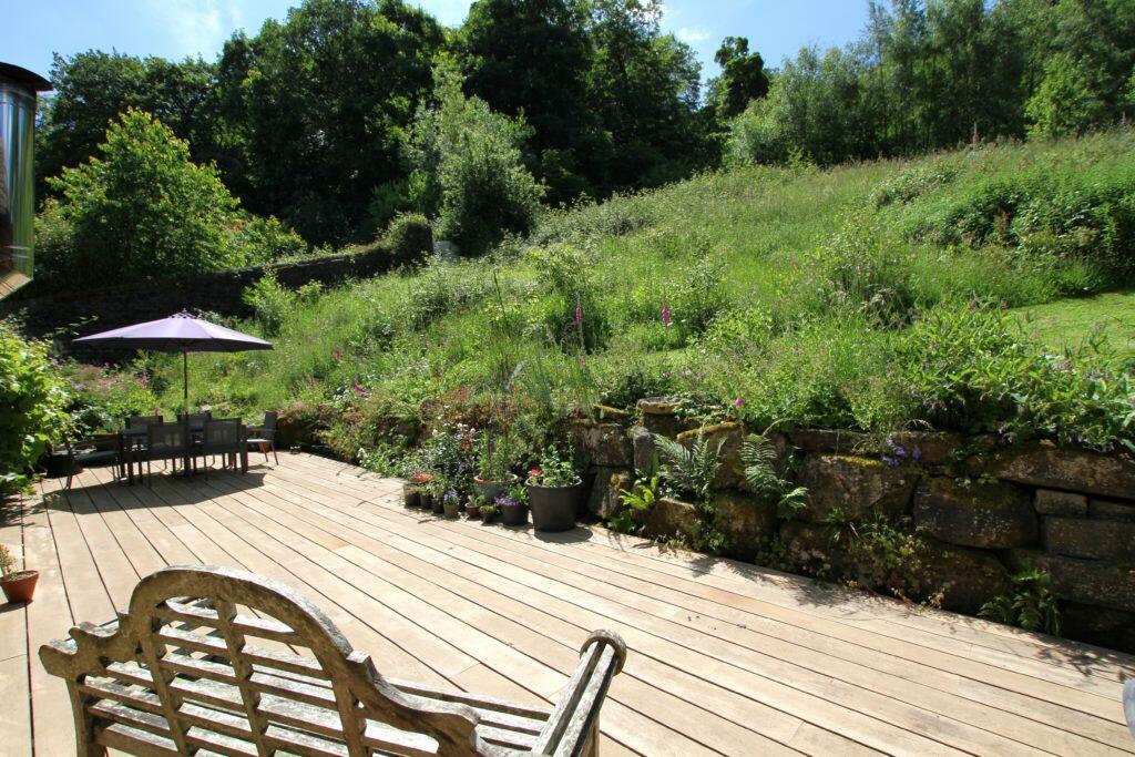 This charming 3-bedroom barn conversion in Steeton, North Yorkshire presents a compelling proposition for buyers seeking a blend of modern living and rural serenity. The property boasts a high-quality interior, featuring stylish and contemporary design elements seamlessly integrated into the character of a converted barn. The extensive use of natural light, the exposed wooden beams, and the open-plan layout of the kitchen/dining/living area create a bright and airy ambiance. The photos highlight a well-maintained exterior and the significant advantage of a sizable garden and deck, ideal for outdoor entertaining and relaxation.