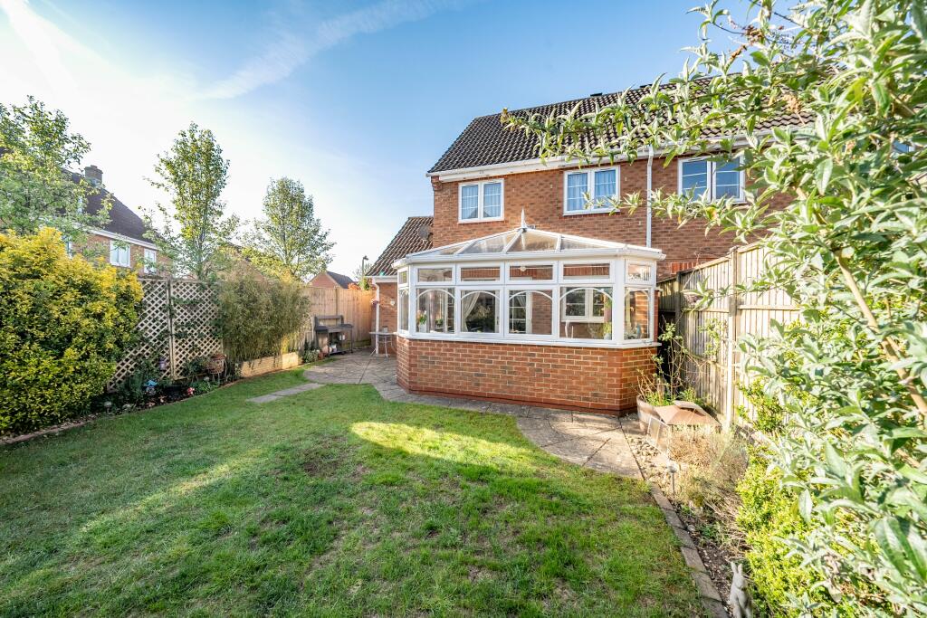 Situated in the sought-after Saxon Fields area, this semi-detached home enjoys a convenient location near a green space and local amenities. The property offers an entrance lobby, a dining room with open access to the kitchen, and a generous sitting room that leads into a bright conservatory. Ups...