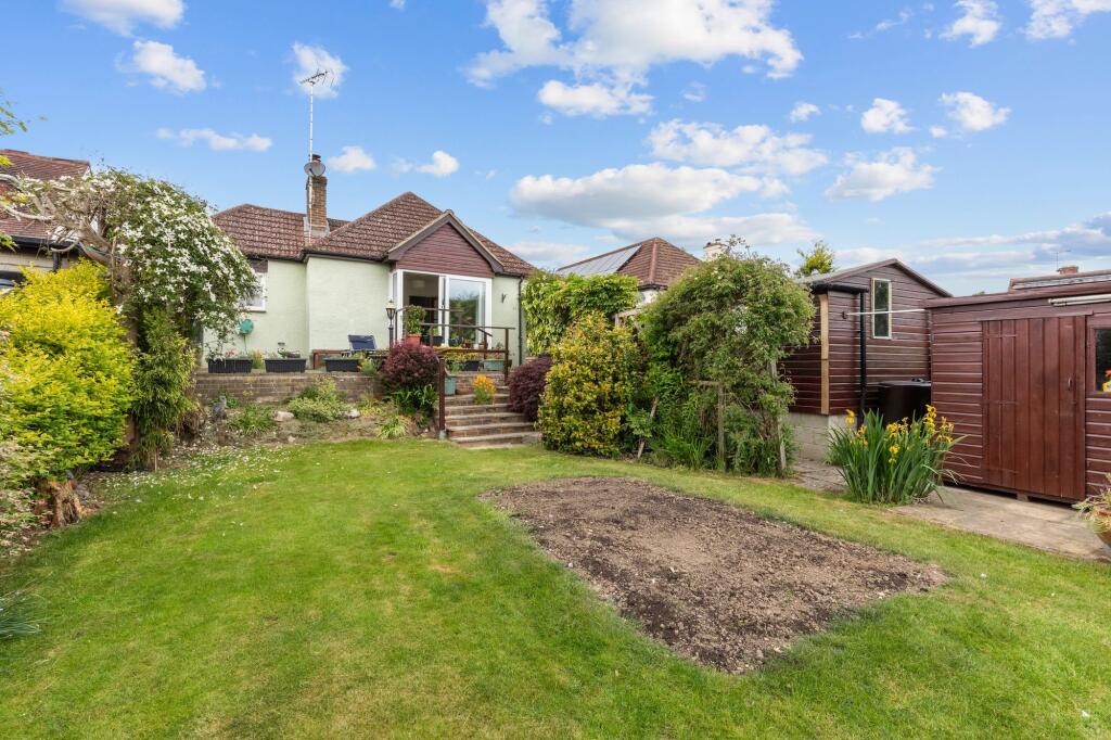 Guide price £585,000 - £600,000 A rarely available 2 double bedroom, 3 reception room detached bungalow, offering potential to improve and enlarge with superb 84' south west facing garden, driveway for 2 vehicles, timber framed garage and no onward chain.