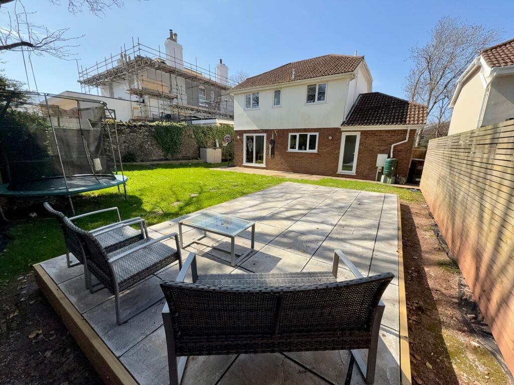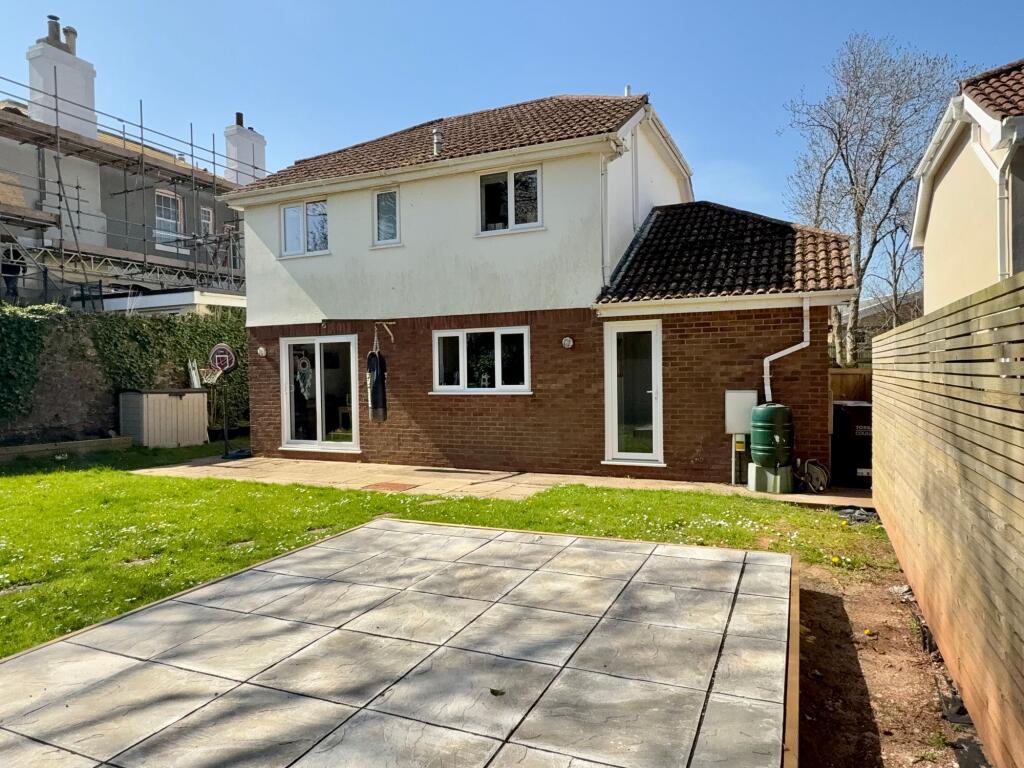 The property is a 4-bedroom, 2-bathroom detached house located in Tormohun, Torquay, Devon. It’s situated on Valley View Close and has a plot size of 1,160 sqft and internal living space of 814 sqft. The list price is £400,000.