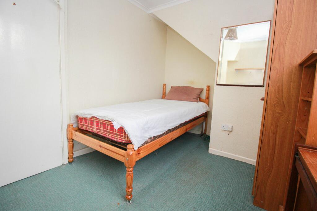 Internally, the property shows a considerable need for modernisation. The decor is dated, notably the carpets and furnishings in the photos. The kitchen and bathrooms could benefit from significant updating. While functional, the overall aesthetic is not up to current standards. The inclusion of a garden adds to the property’s appeal. The presence of a greenhouse is a desirable feature for those with gardening interests.