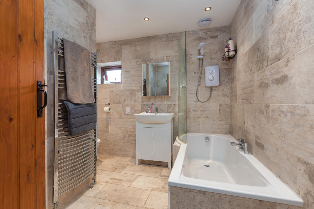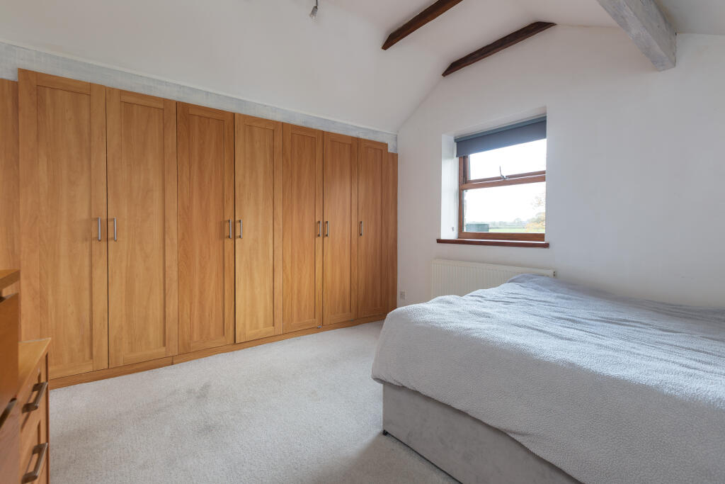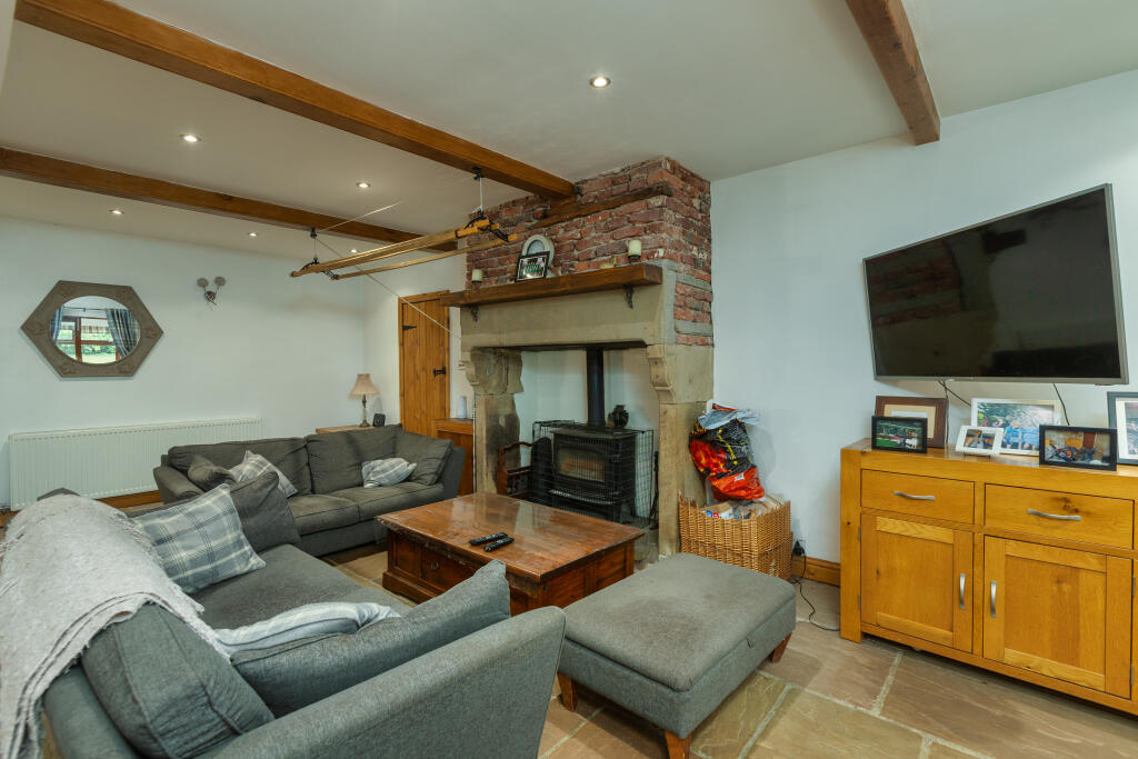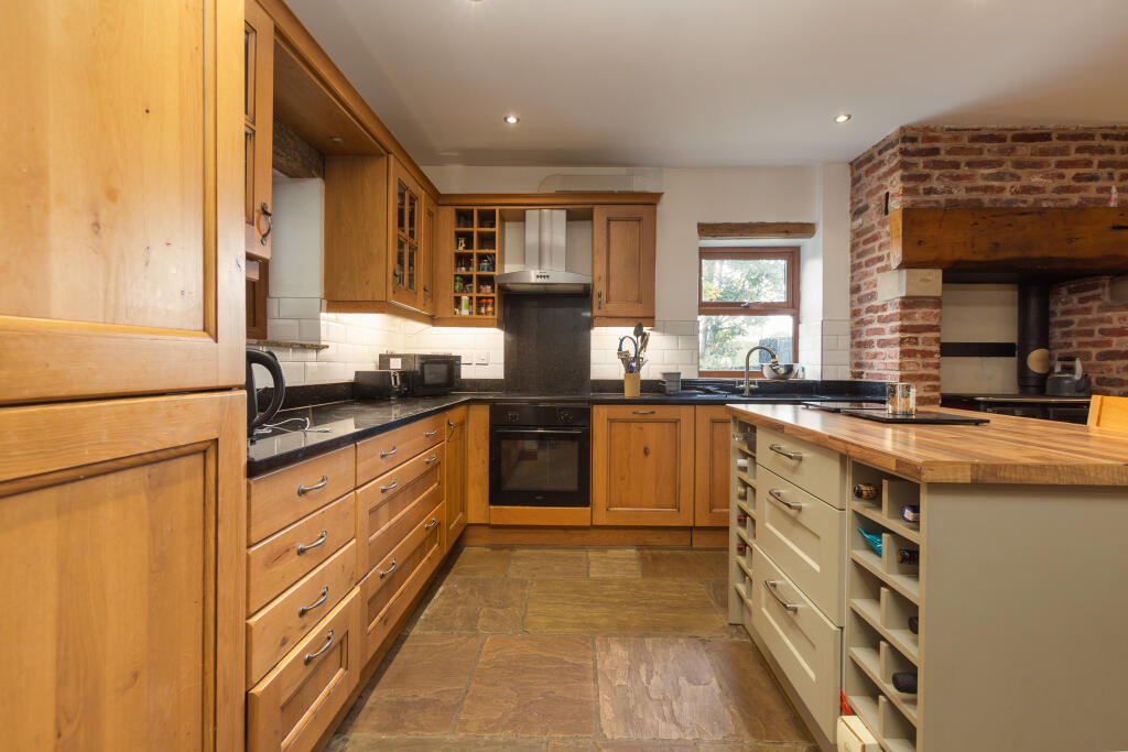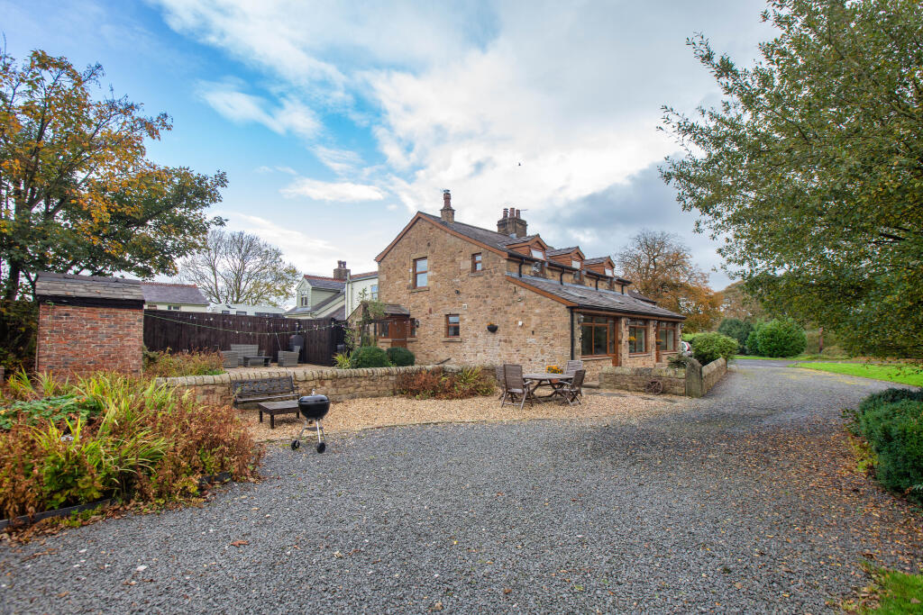 This is a substantial character property located in a desirable rural area near Preston. The house offers six bedrooms and four bathrooms, making it suitable for a large family. The interior is well-maintained, blending modern amenities with traditional features such as exposed wooden beams. The property benefits from a large garden with mature trees and a stream, providing ample outdoor space. While the asking price is high for the area, the size of the property and land, combined with its character, contribute to its value. The nearby ‘Good’ rated primary school is a plus for families with young children.